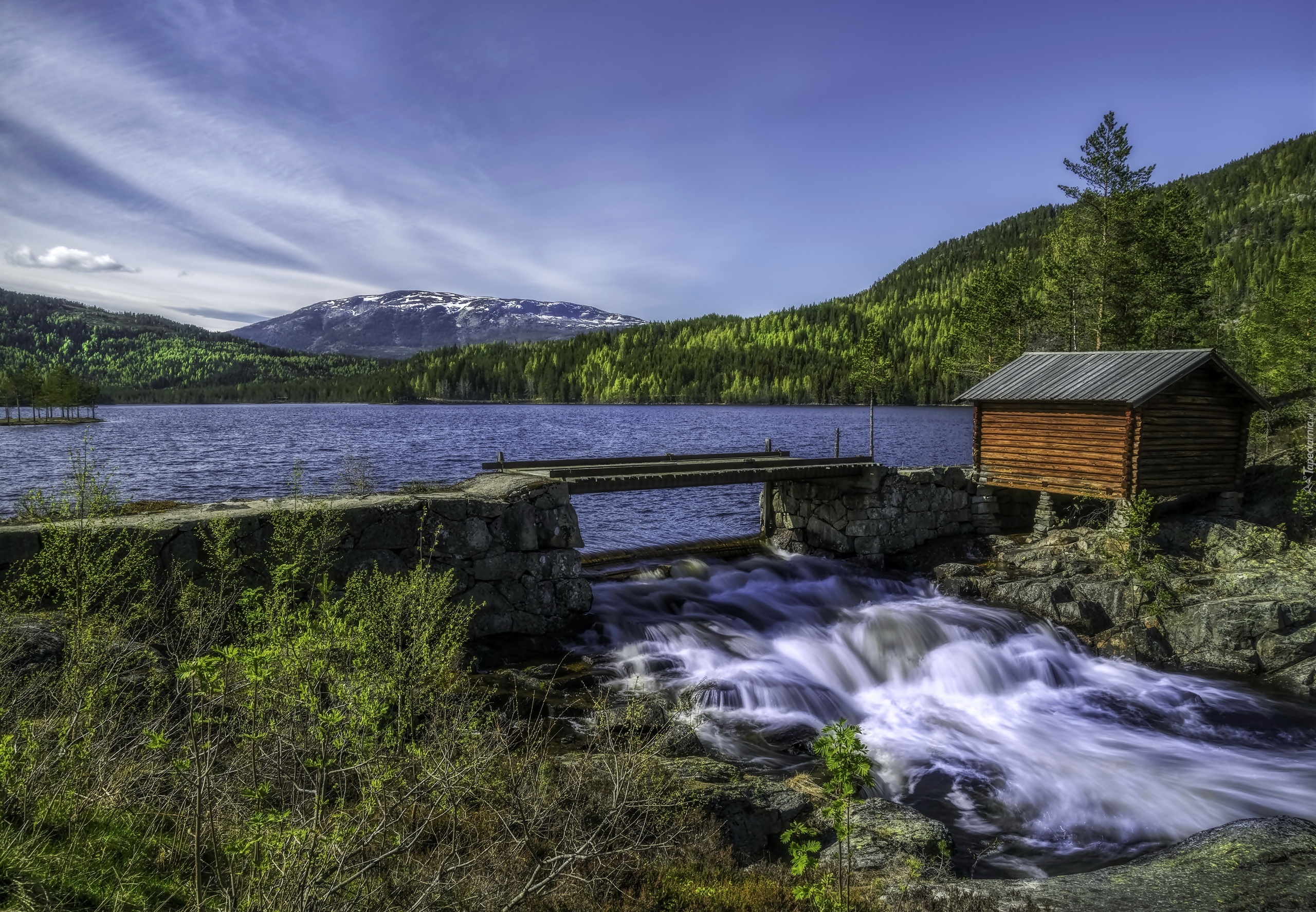 Edytor tapety: Szopa, Góry, Lasy, Jezioro, Norwegia