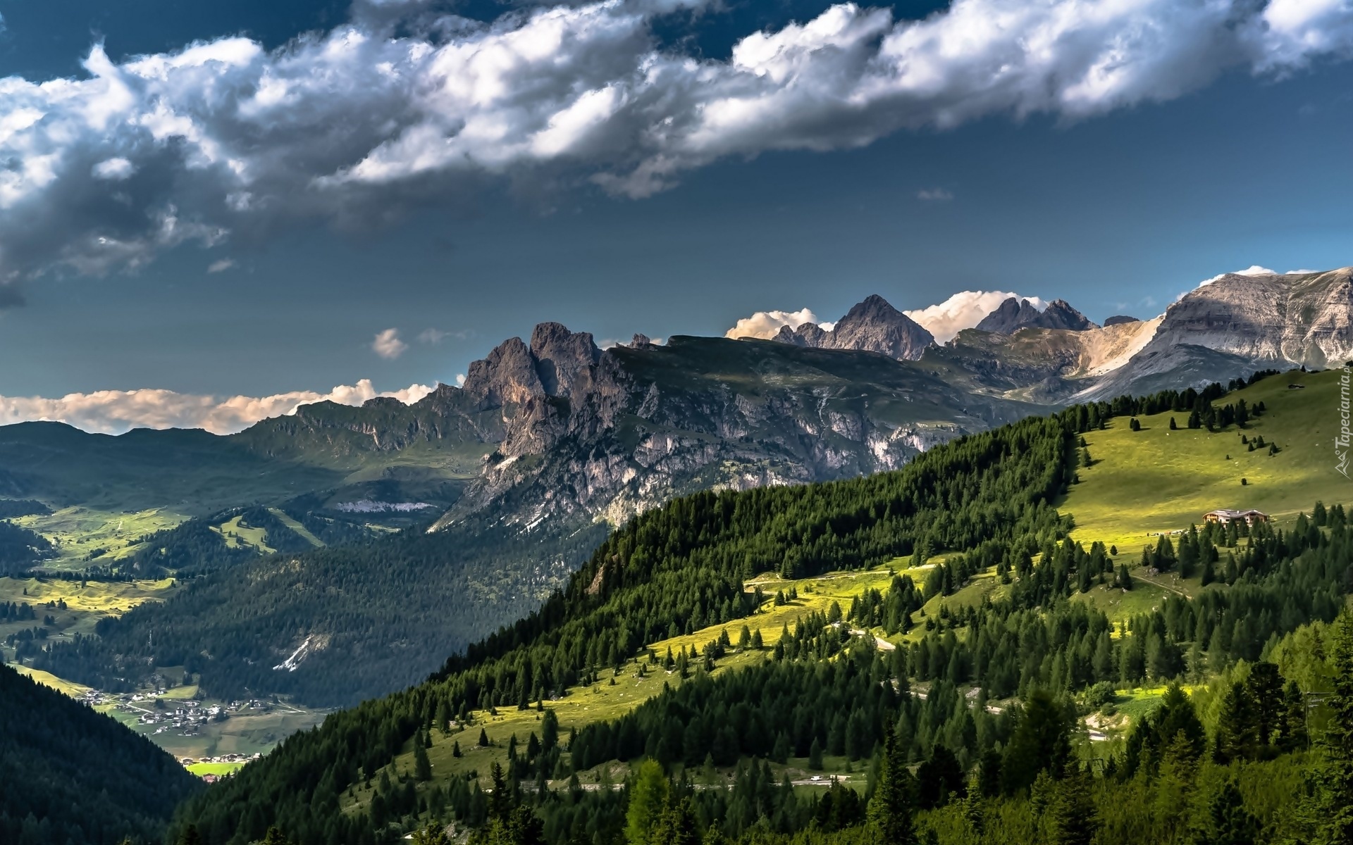 Edytor tapety: Góry, Lasy, Drogi, Dolina, Wioska