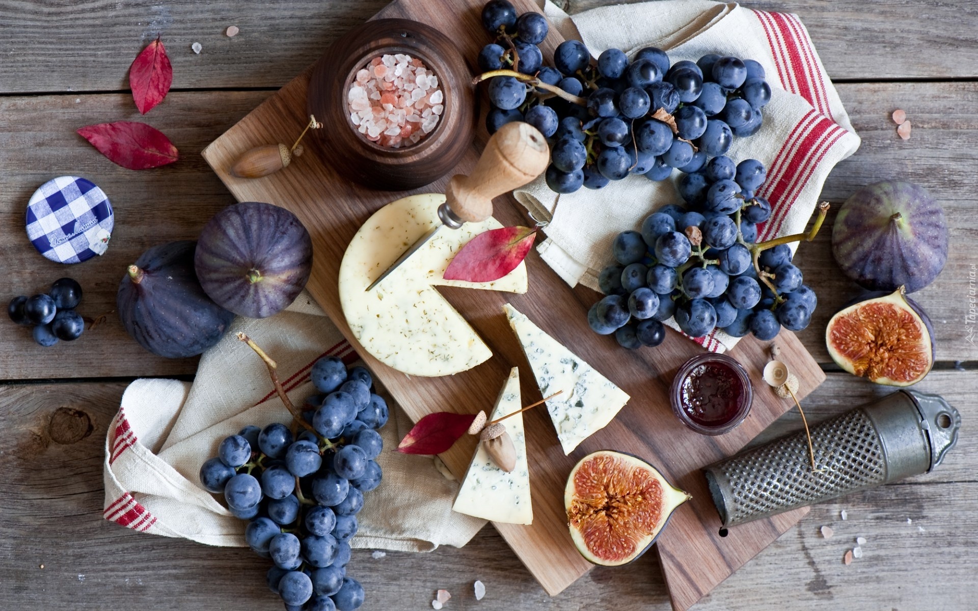 Edytor tapety: Ser, Winogrono, Figi, Sól