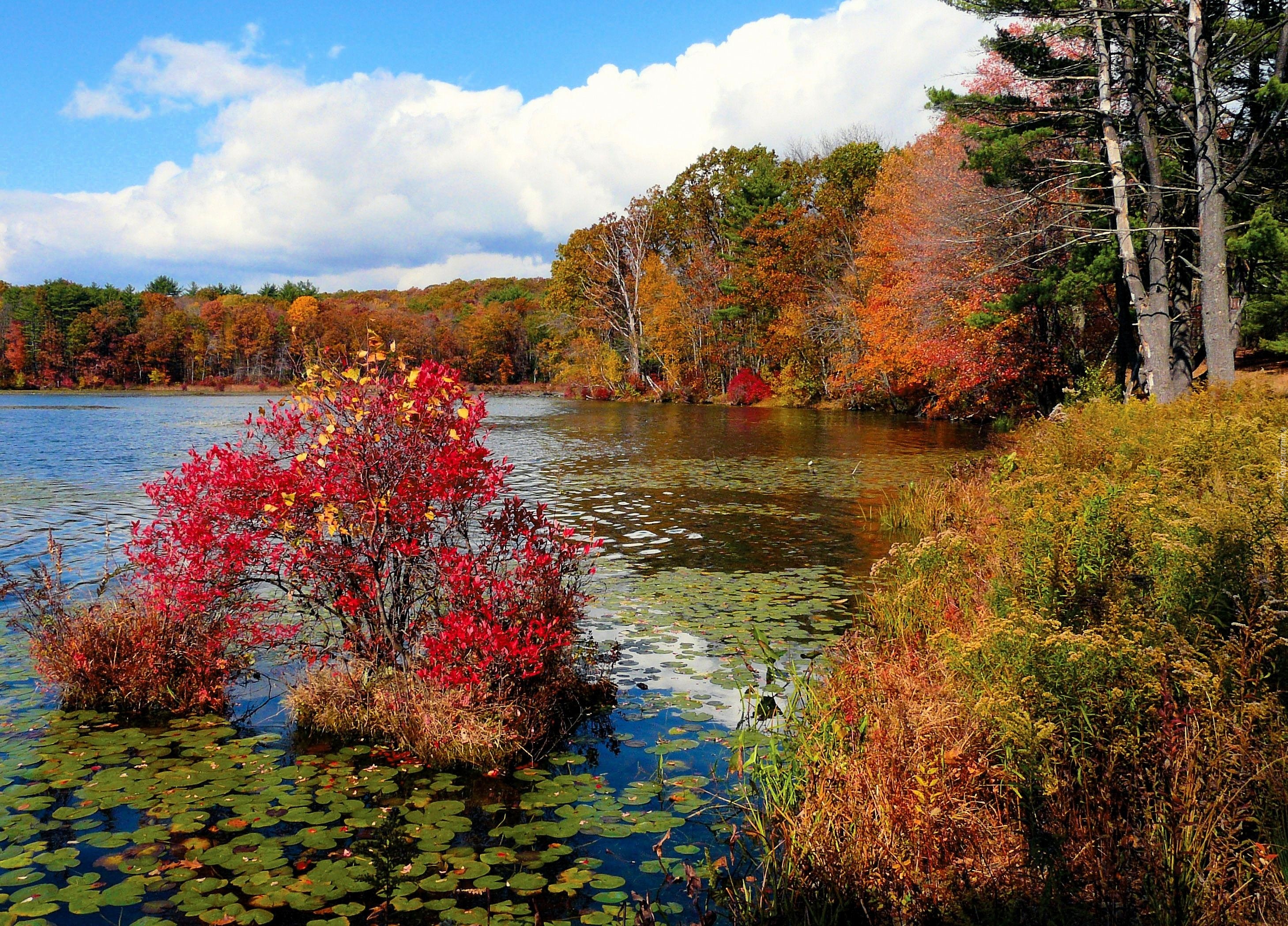 Edytor tapety: Jesień, Jezioro, Drzewa, Lilie