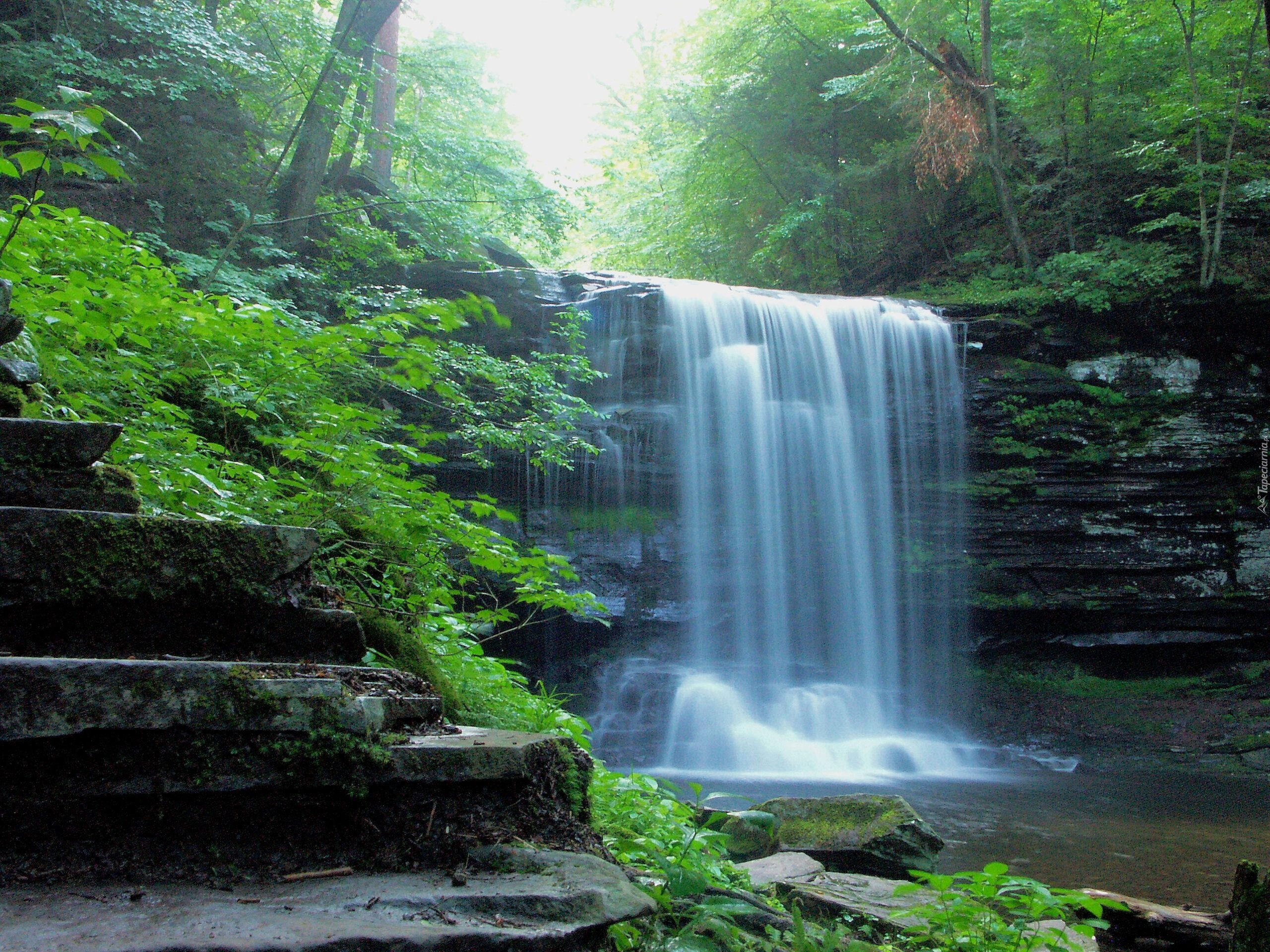 Edytor tapety: Wodospad, Kamienie, Las