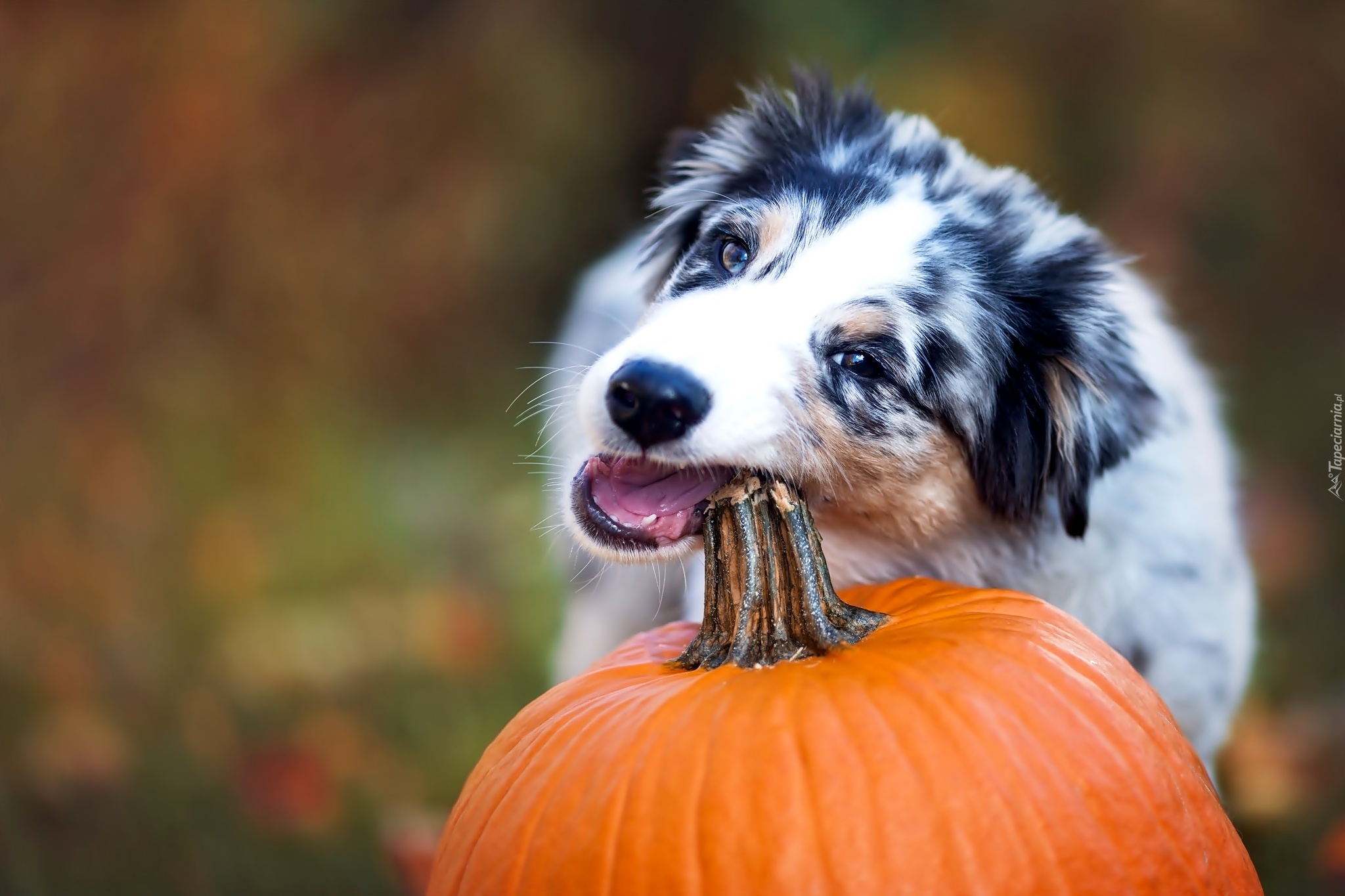 Edytor tapety: Pies, Owczarek, Australijski, Dynia