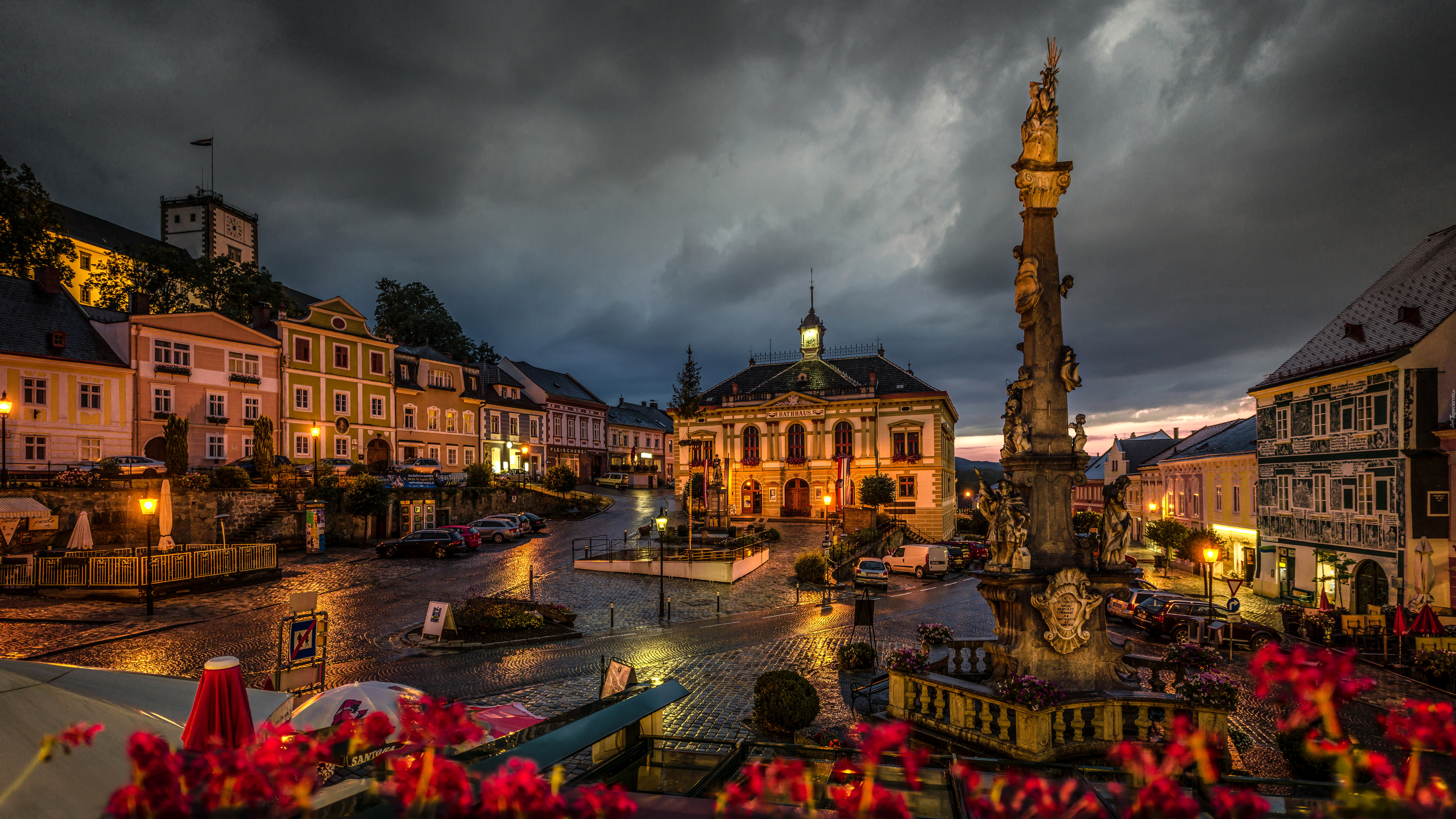Edytor tapety: Austria, Miasto, Nocą, Ulice, Domy, Pomnik