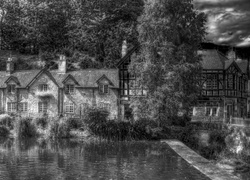 Edytor tapety: Anglia, Domy, Rzeka, Drzewa