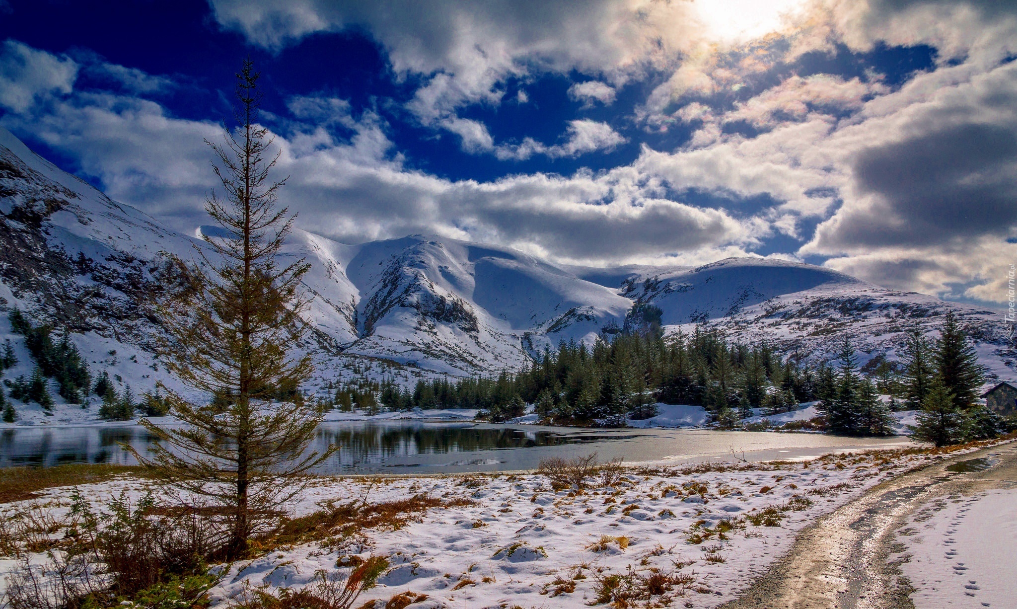 Edytor tapety: Zima, Góry, Jezioro, Krajobraz