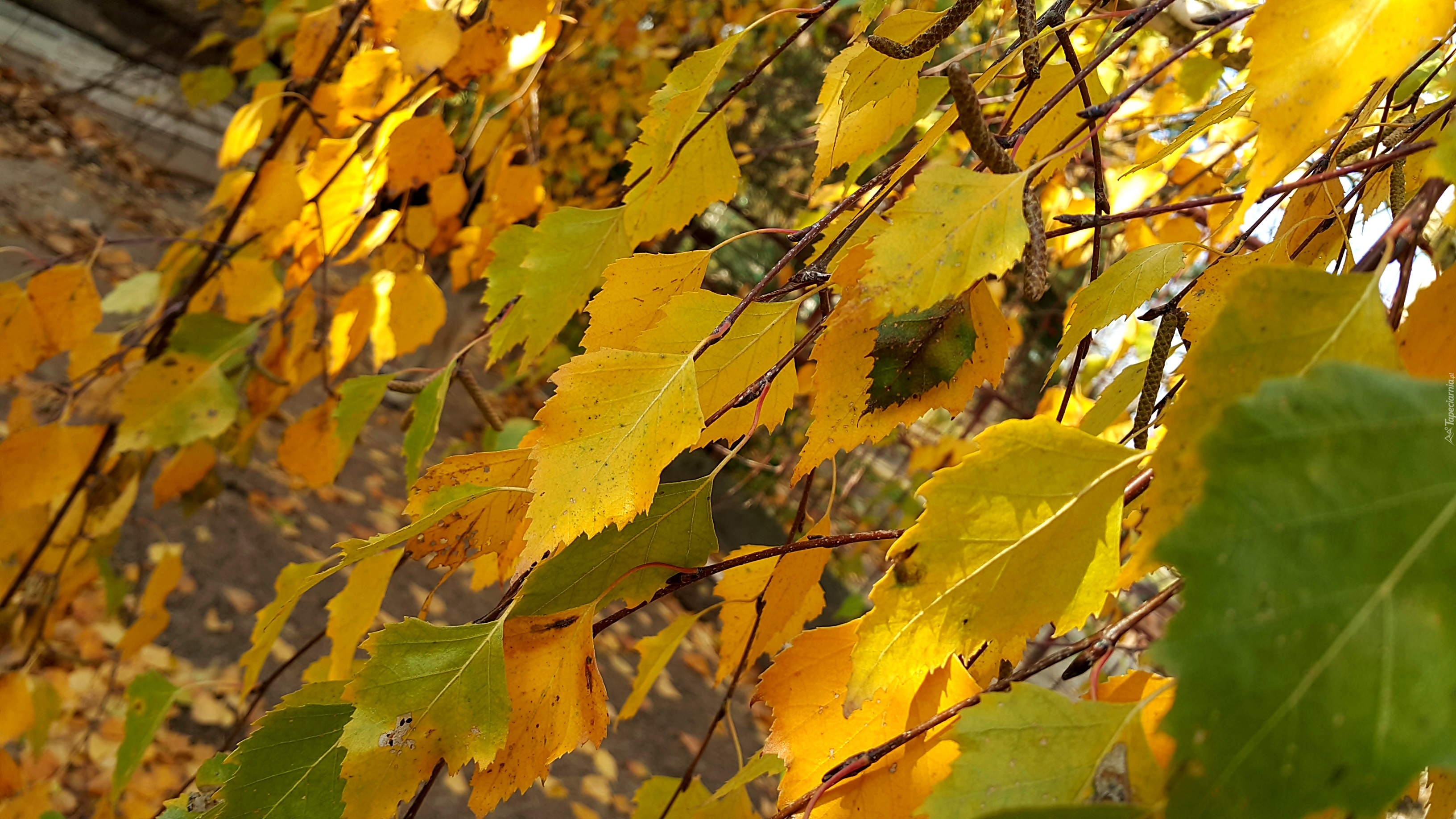 Edytor tapety: Żółte, Liście, Brzozy, Gałązki