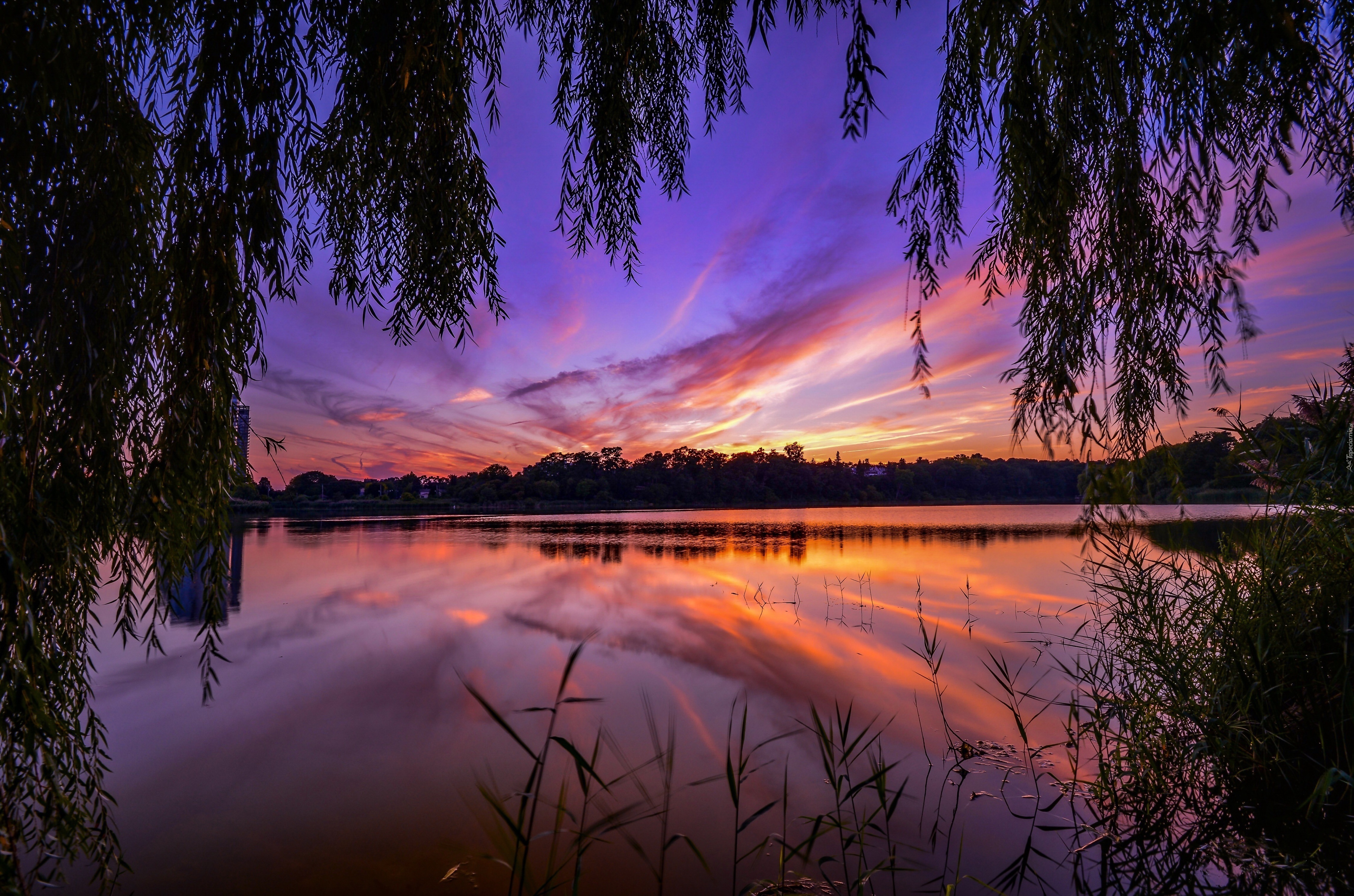 Edytor tapety: Zachód Słońca, Rzeka, Gałęzie Drzew