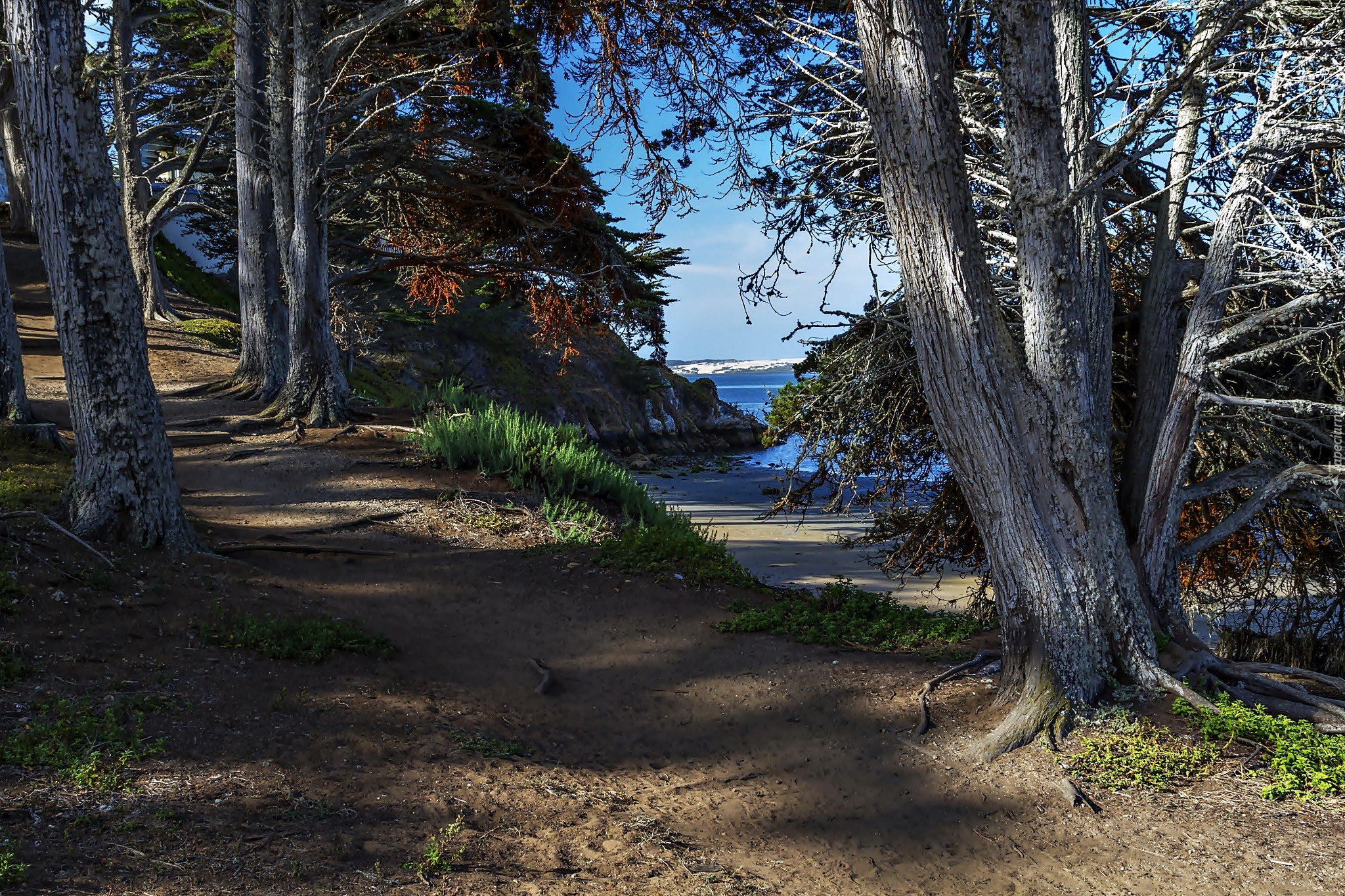 Edytor tapety: Las, Ścieżka, Morze, Drzewa, Wybrzeże
