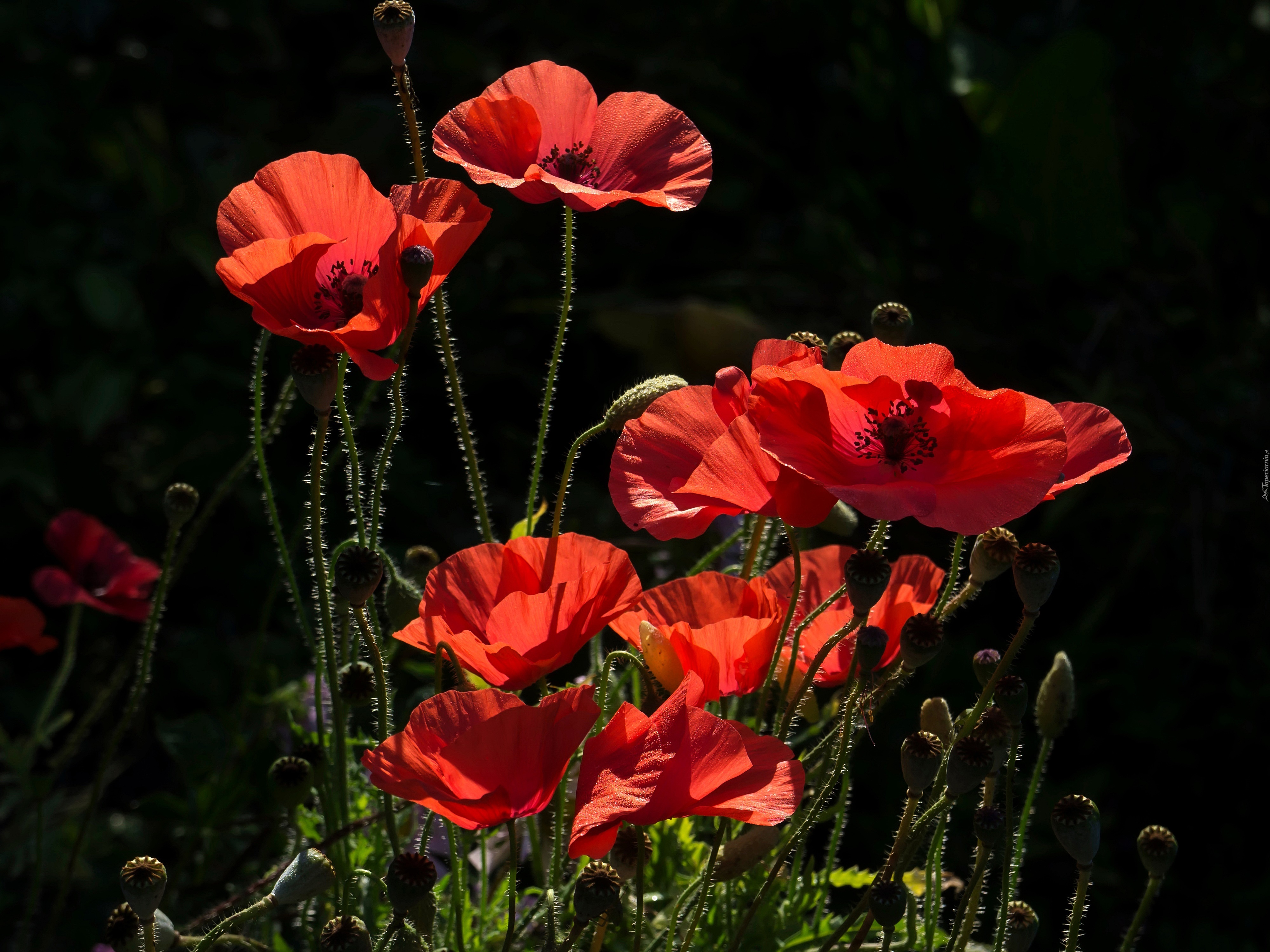 Edytor tapety: Maki, Ogród, Wieczór, Światło