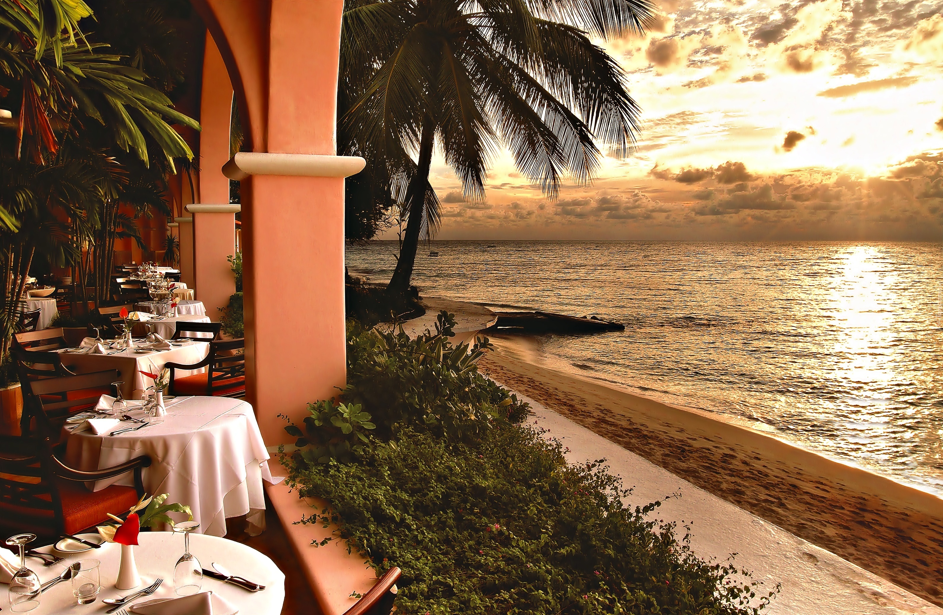 Edytor tapety: Hotelowa Restauracja, Morze, Plaża, Poranek, Wschód Słońca
