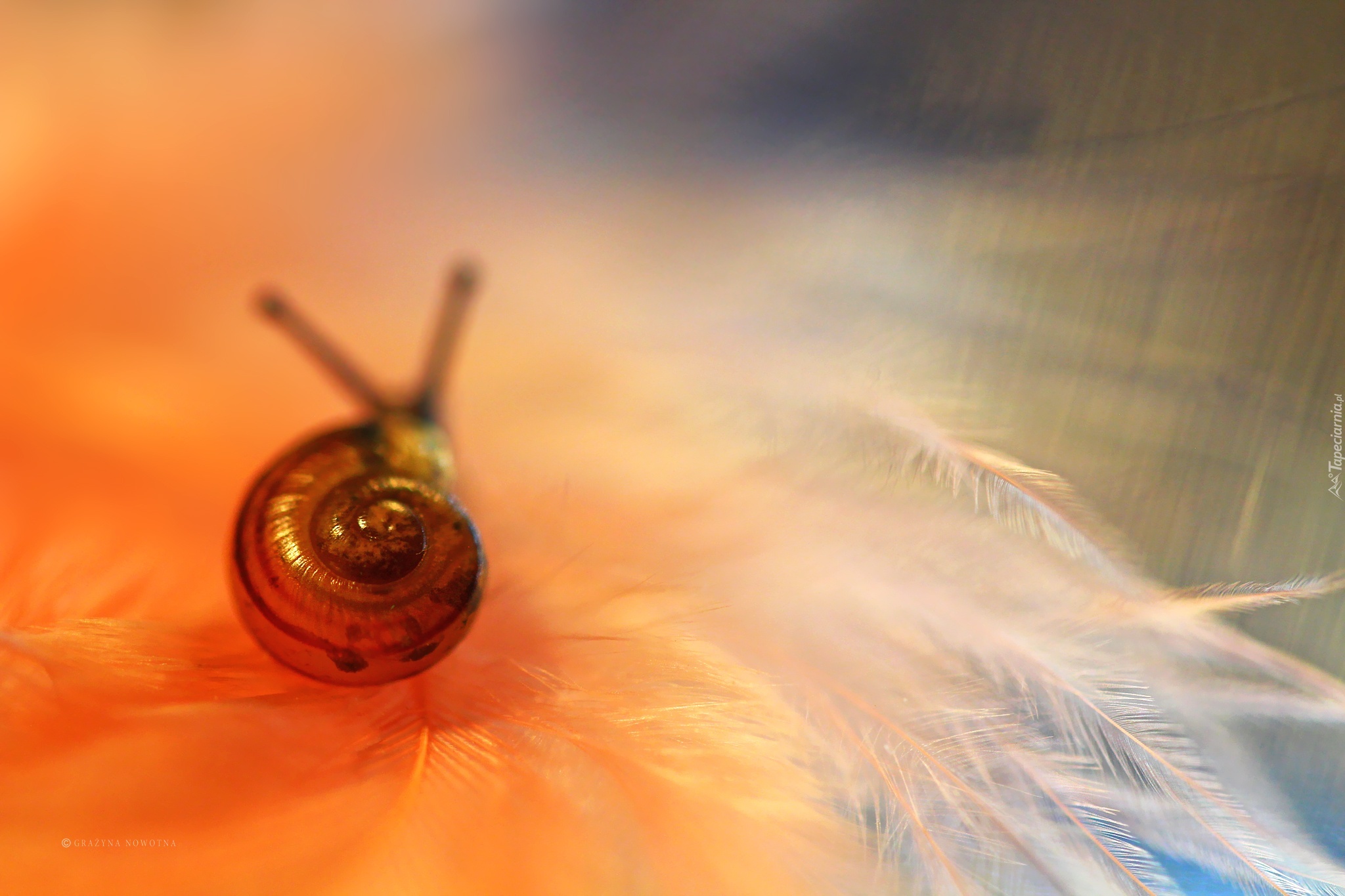 Edytor tapety: Ślimak, Muszla, Piórka