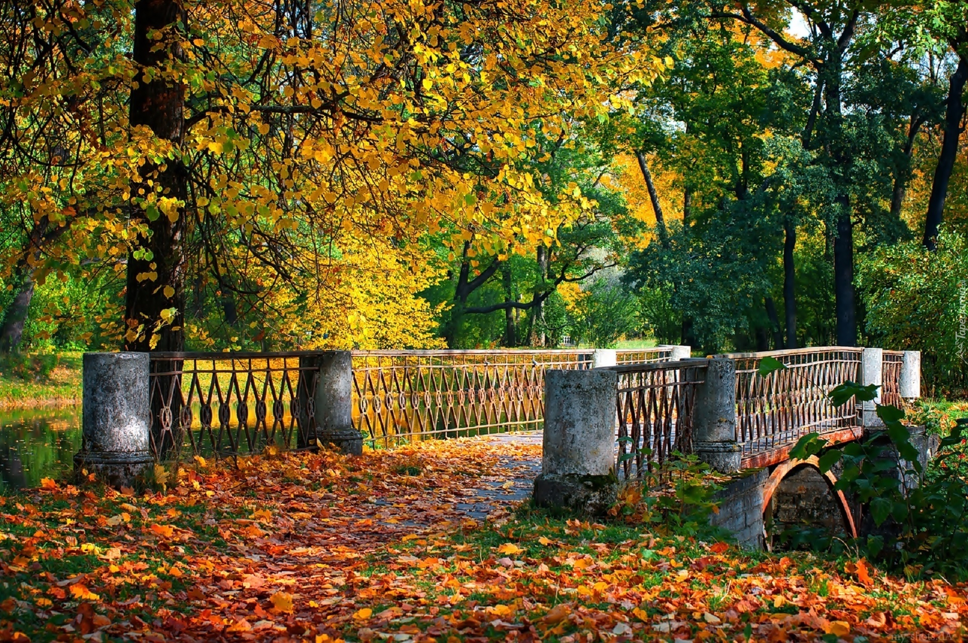 Edytor tapety: Most, Rzeka, Liście, Park, Jesień