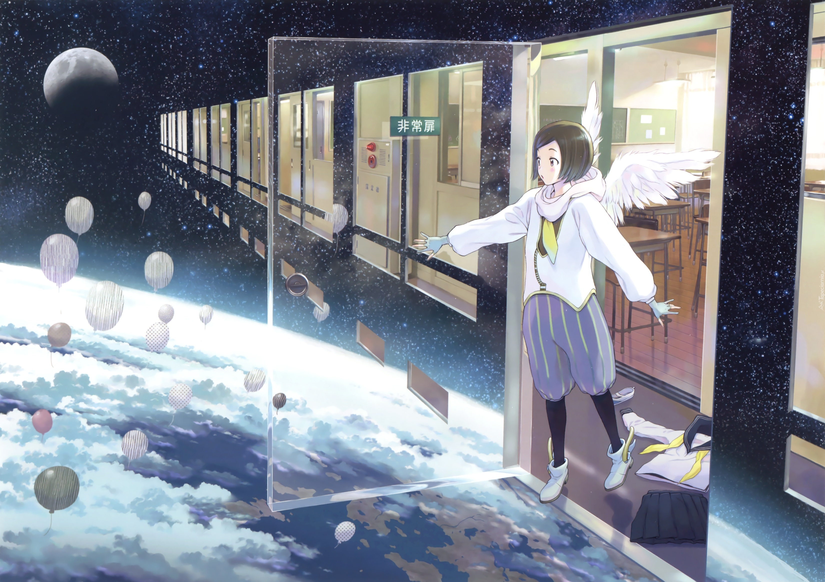 Edytor tapety: Dziewczyna, Skrzydła, Balony, Gwiazdy