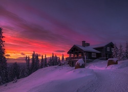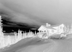 Edytor tapety: Zima, Zachód Słońca, Dom
