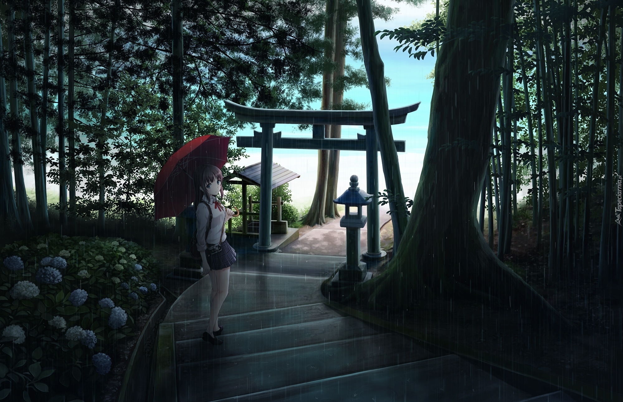Edytor tapety: Dziewczyna, Parasol, Deszcz