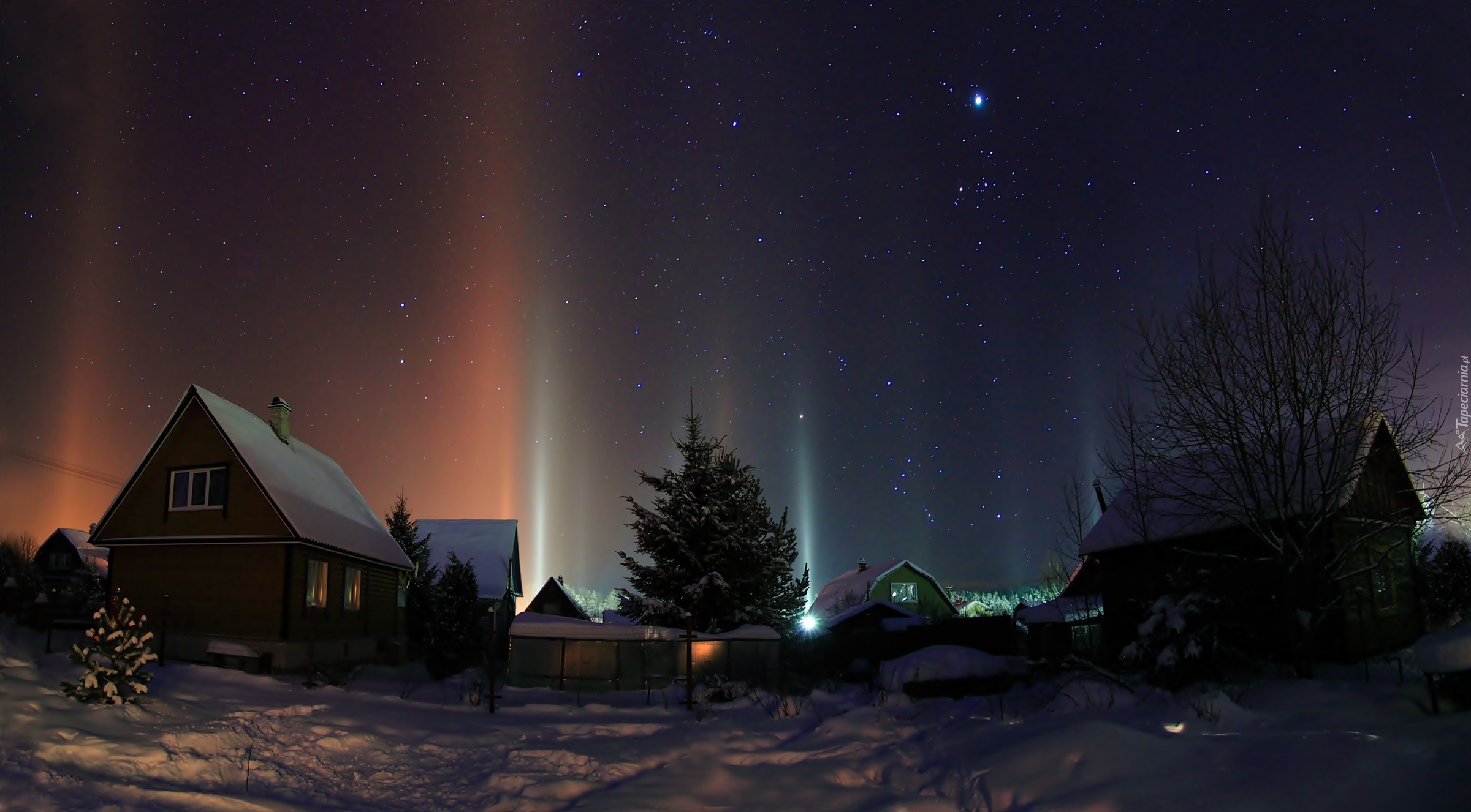 Edytor tapety: Zima, Noc, Domy, Gwiazdy