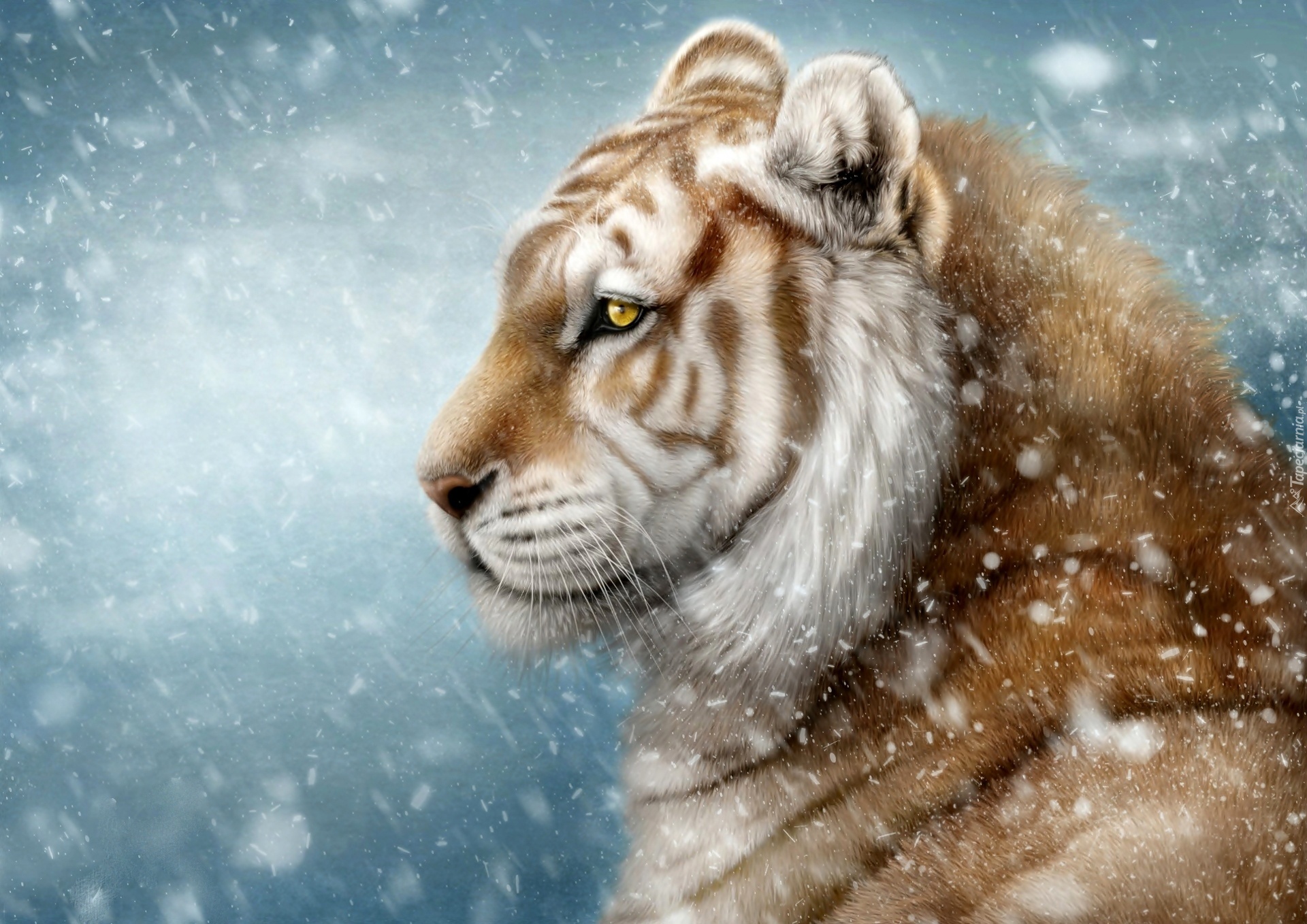 Edytor tapety: Tygrys, Płatki ,Śniegu
