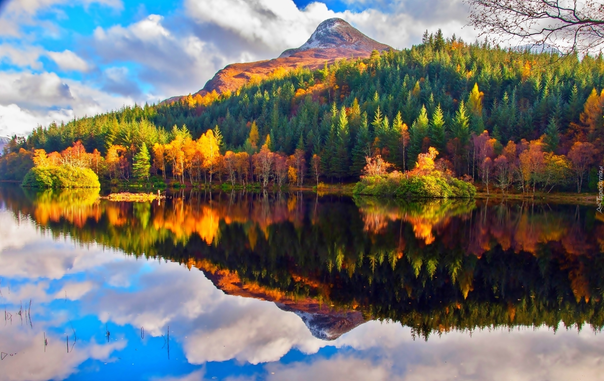 Edytor tapety: Góry, Las, Kolorowe, Drzewa, Jezioro, Jesień