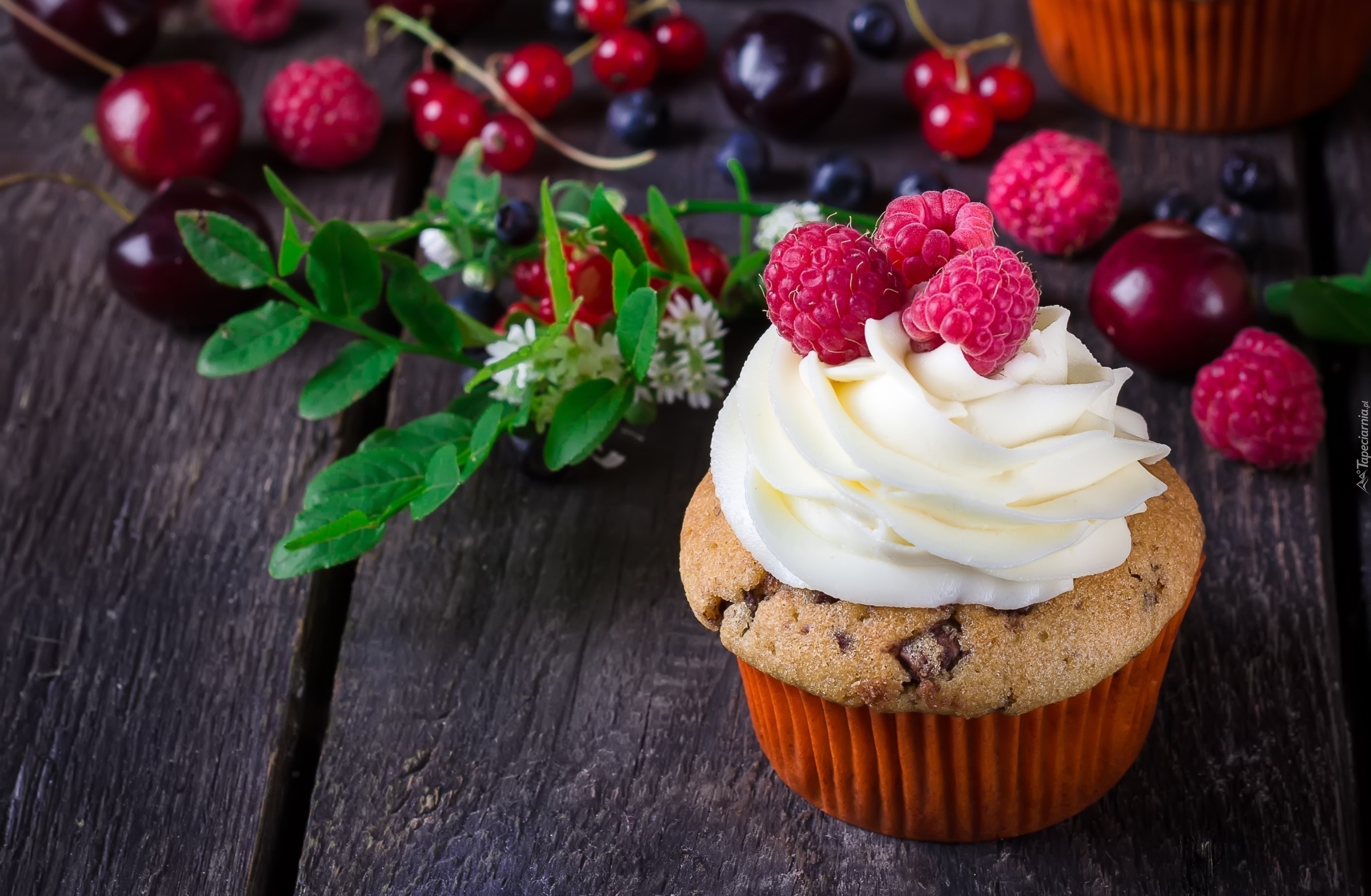 Edytor tapety: Babeczka, Maliny