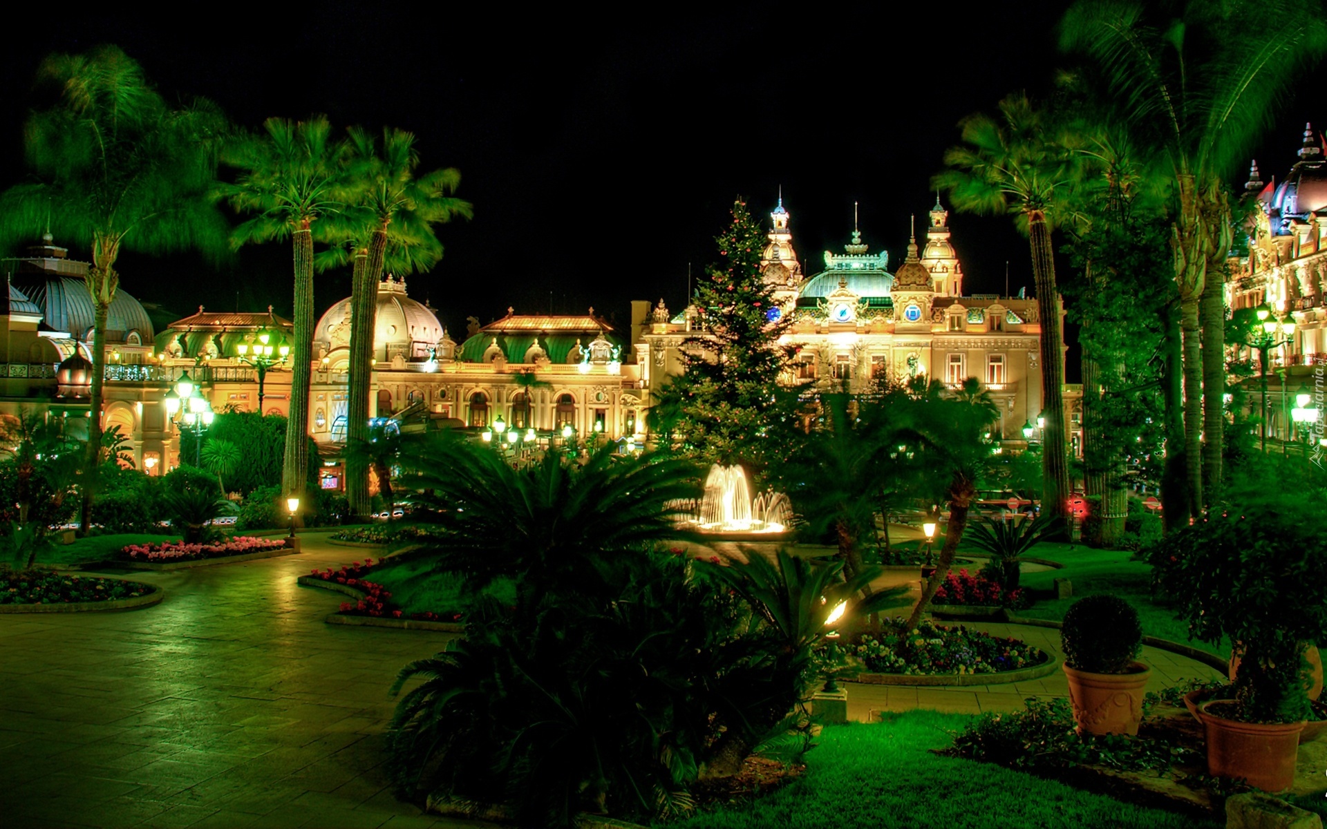 Edytor tapety: Świątecznie, Choinka, Monako, Miasto, Nocą