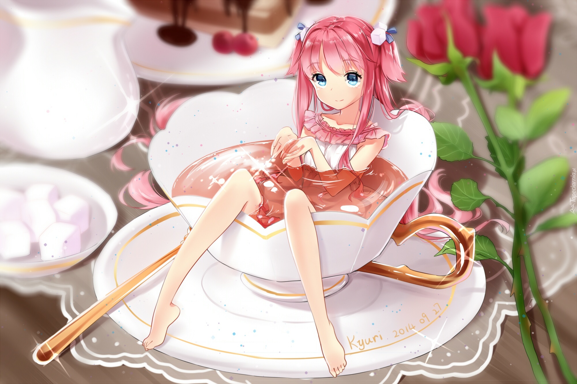 Edytor tapety: Dziewczyna, Filiżanka, Róże