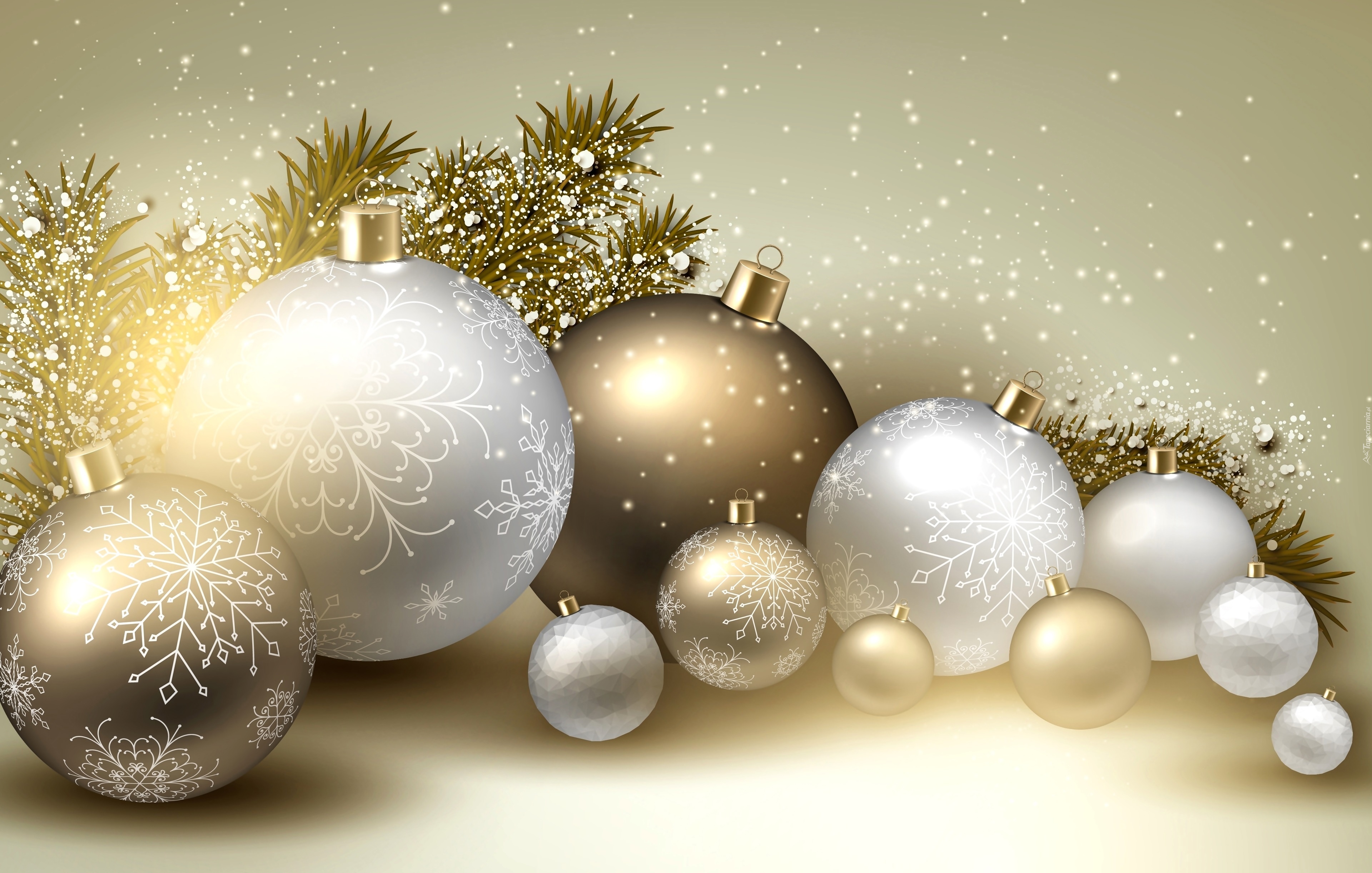 Edytor tapety: Złote, Białe, Bombki, Gałązka