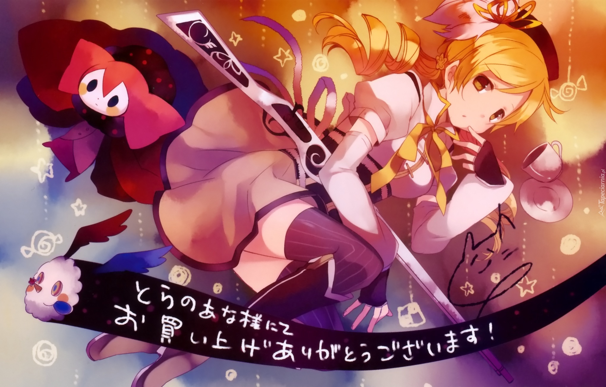 Edytor tapety: Mahou Shoujo Madoka Magica, Tomoe Mami, Charlotte