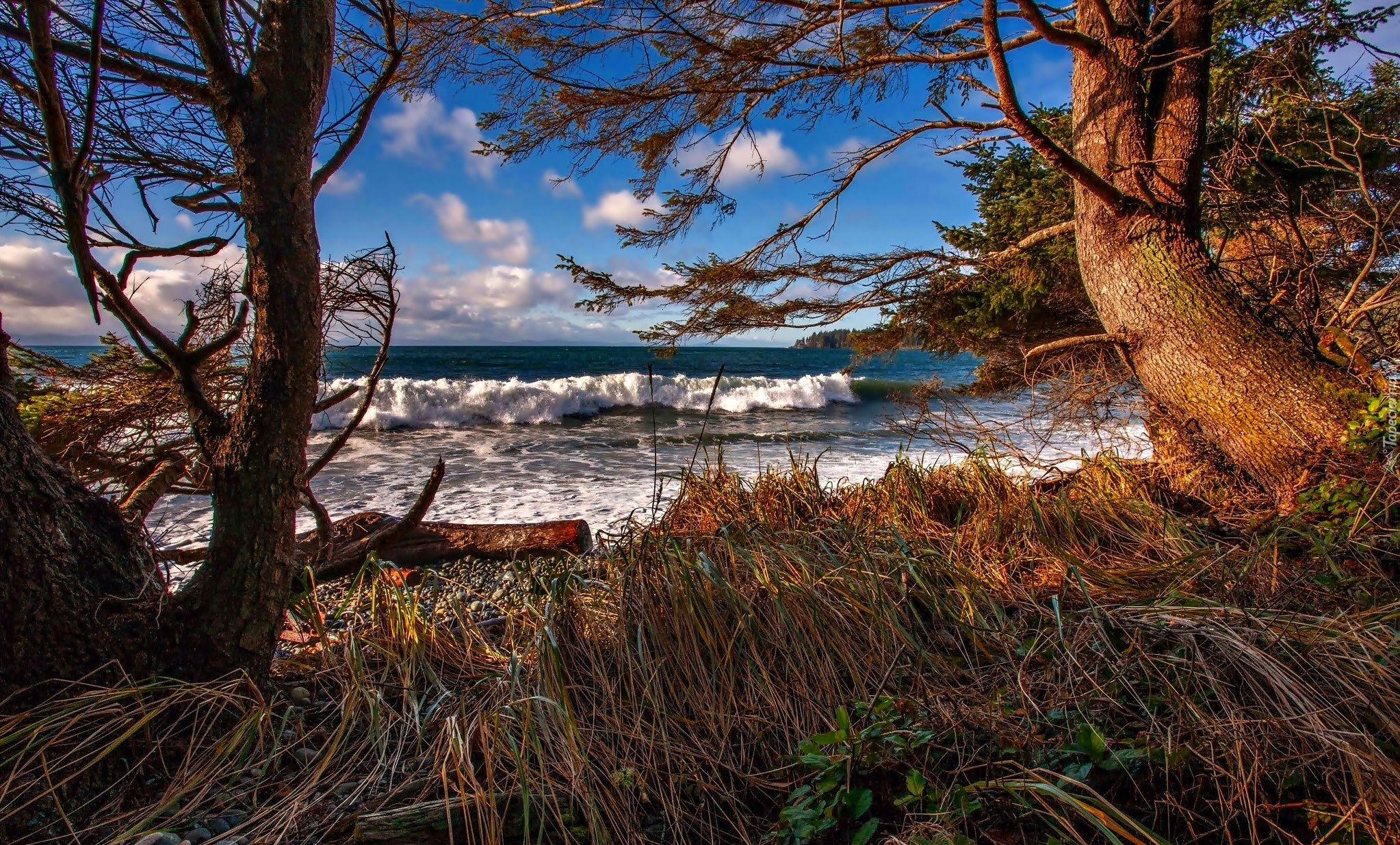Edytor tapety: Wybrzeże, Morze, Fale, Drzewa