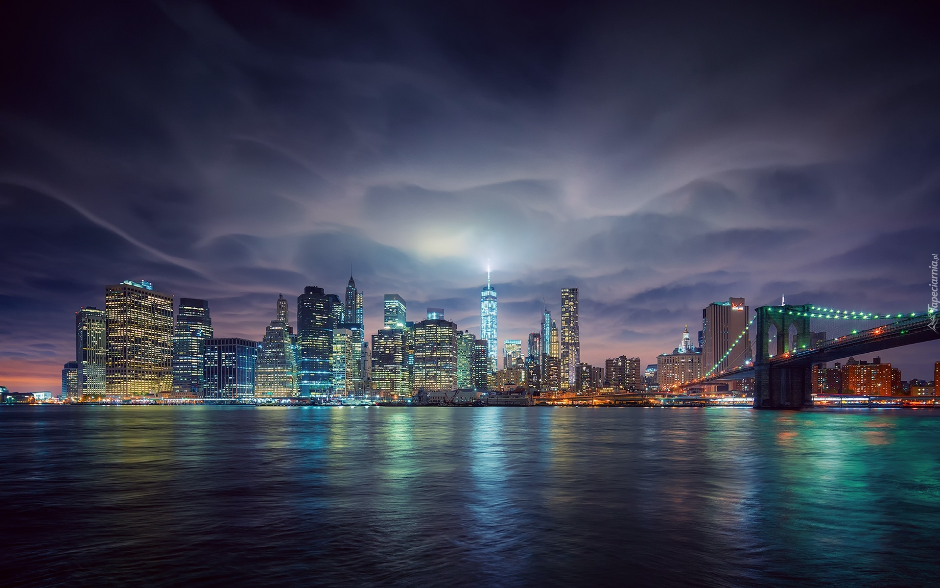 Edytor tapety: Nowy Jork, Drapacze Chmur, Noc, Most