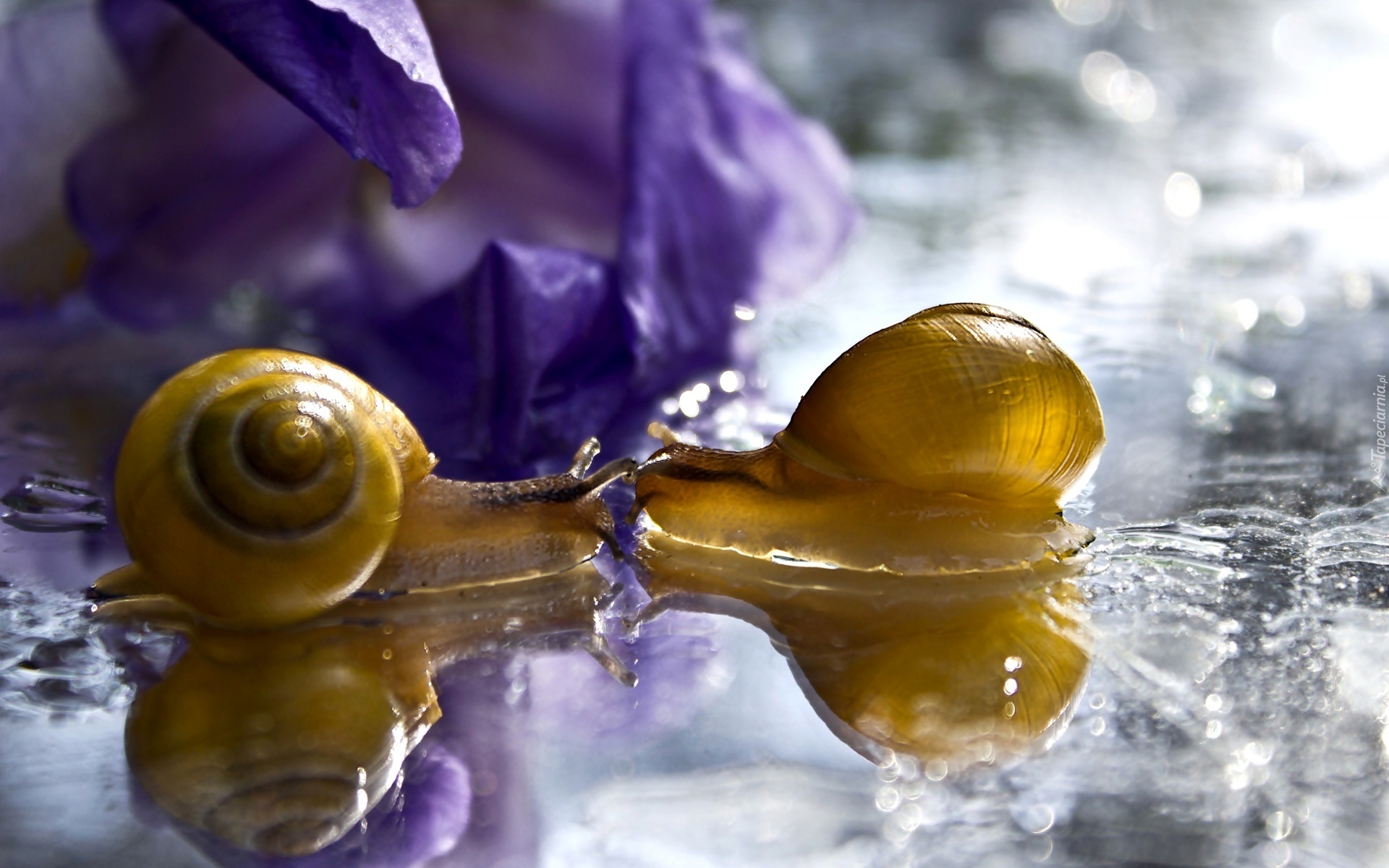 Edytor tapety: Dwa, Ślimaki, Makro, Odbicie