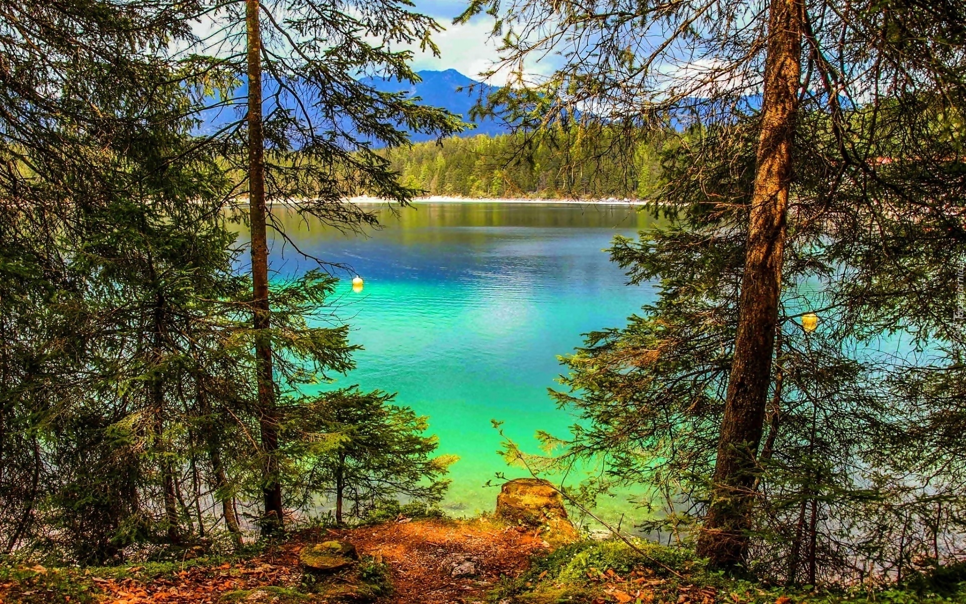 Edytor tapety: Turkusowe, Jezioro, Eibsee, Las, Bawaria, Niemcy