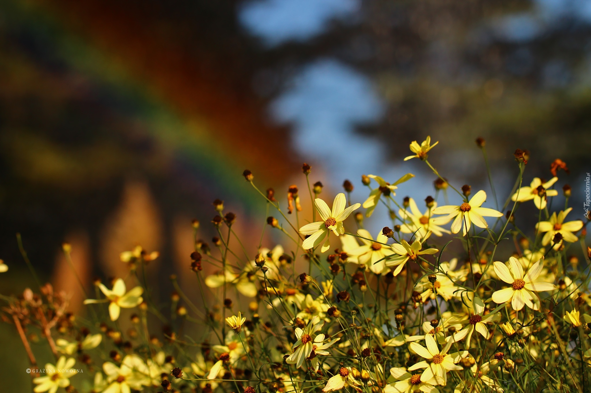 Edytor tapety: Żółte, Kwiaty, Kosmea, Tęcza