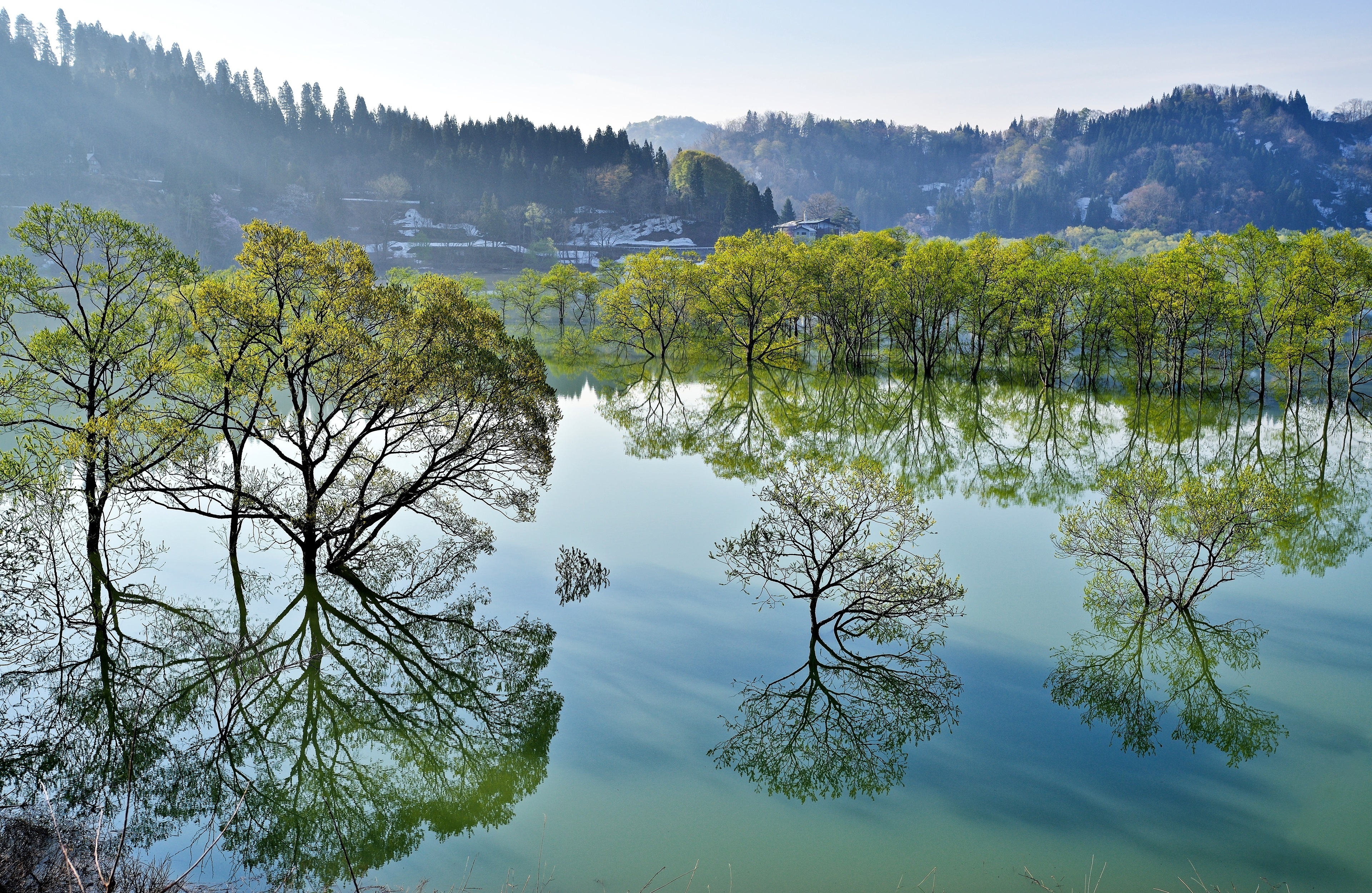 Edytor tapety: Jezioro, Wybrzeże, Drzewa, Odbicie