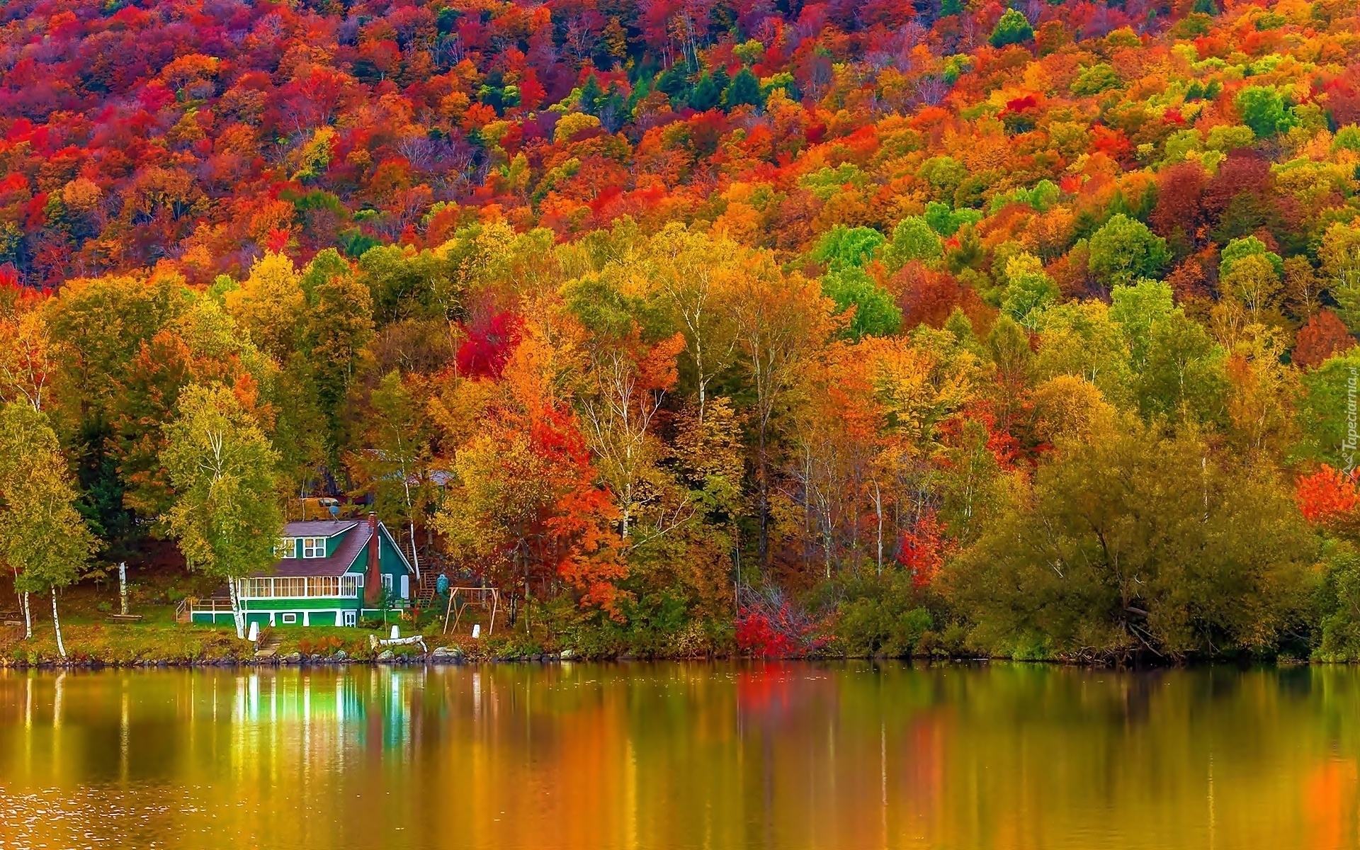 Edytor tapety: Domek, Jesień, Las, Rzeka