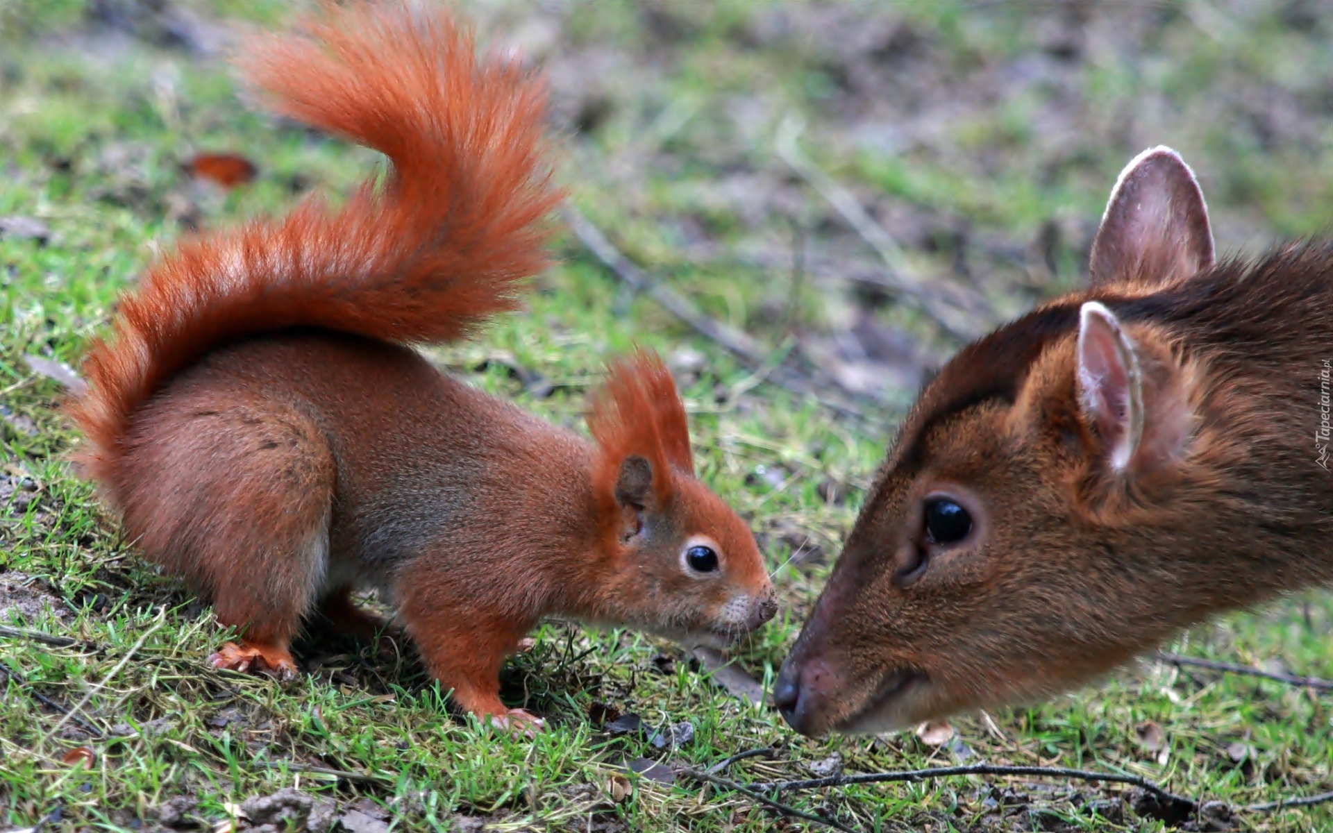 Edytor tapety: Wiewiórka, Młody, Jelonek, Bliskie, Spotkanie, Las