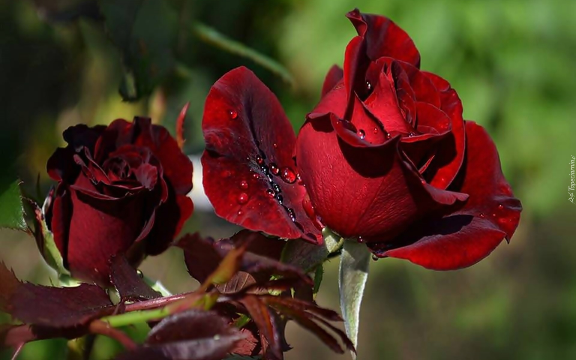 Edytor tapety: Róże, Gałązka, Krople, Deszczu, Park