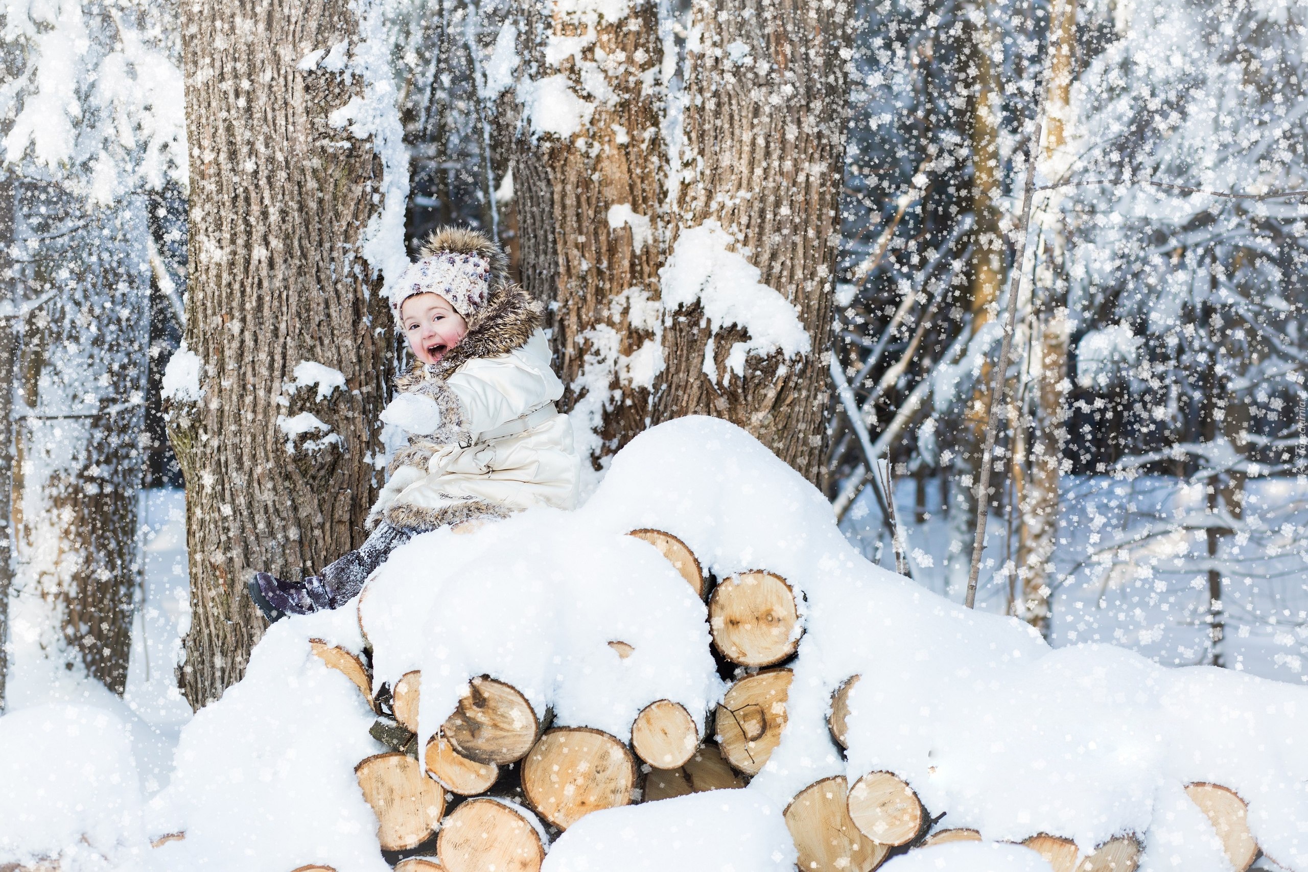 Edytor tapety: Zima, Śnieg, Dziecko, Drzewa