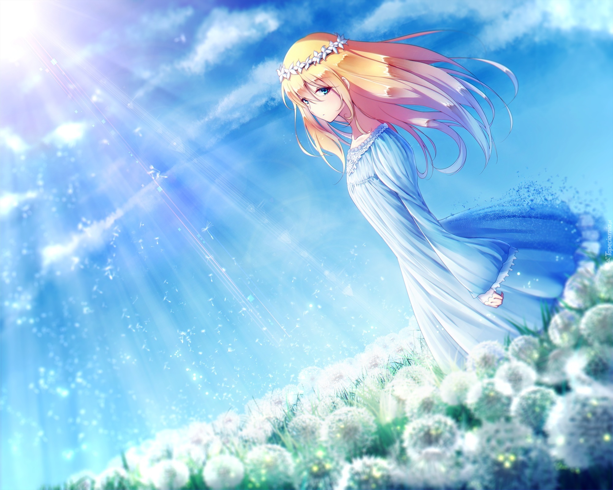 Edytor tapety: Dziewczyna, Dmuchawce, Słońce