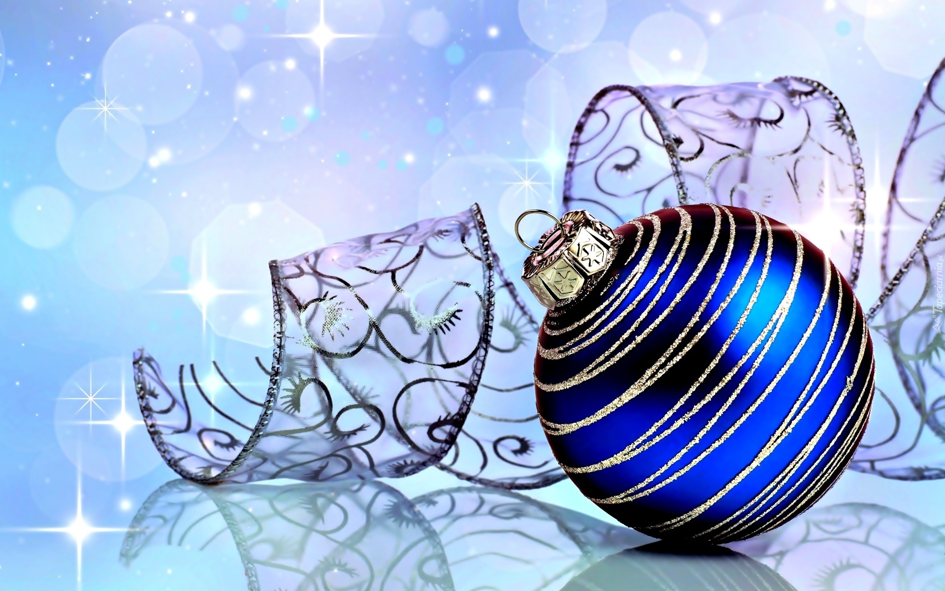 Edytor tapety: Boże Narodzenie, Dekoracje, Niebieska, Bombka, Wstążka