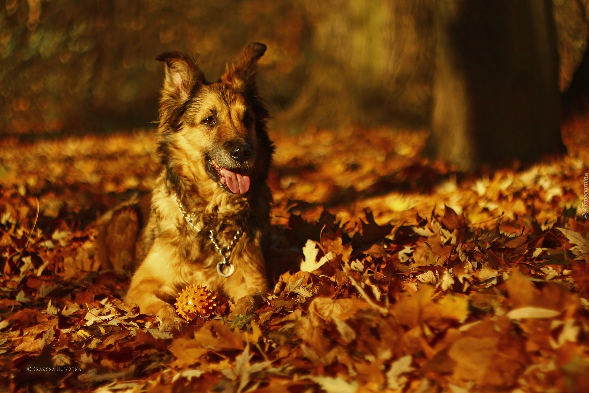 Edytor tapety: Pies, Suczka, Shila, Jesień, Liście