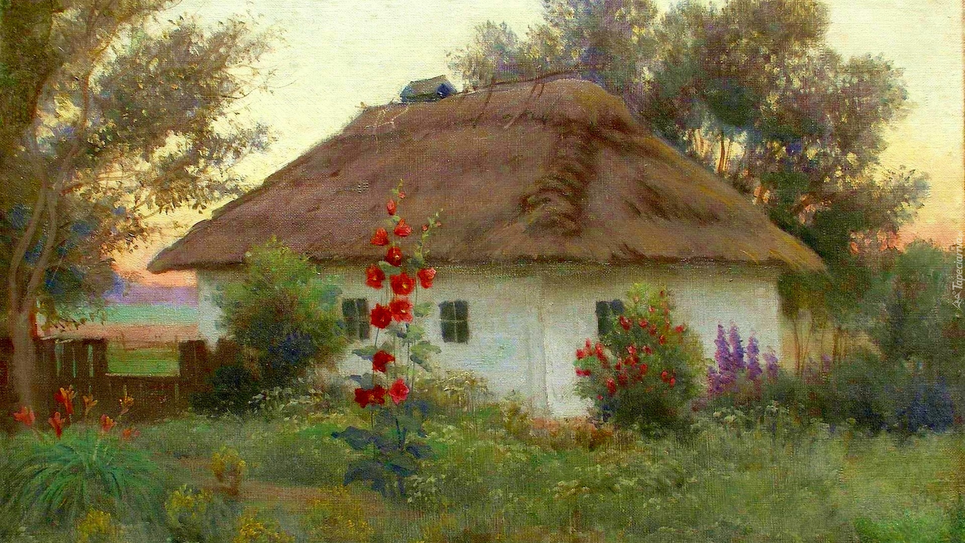 Edytor tapety: Malarstwo, Obraz, Dom, Wieś, Malwy