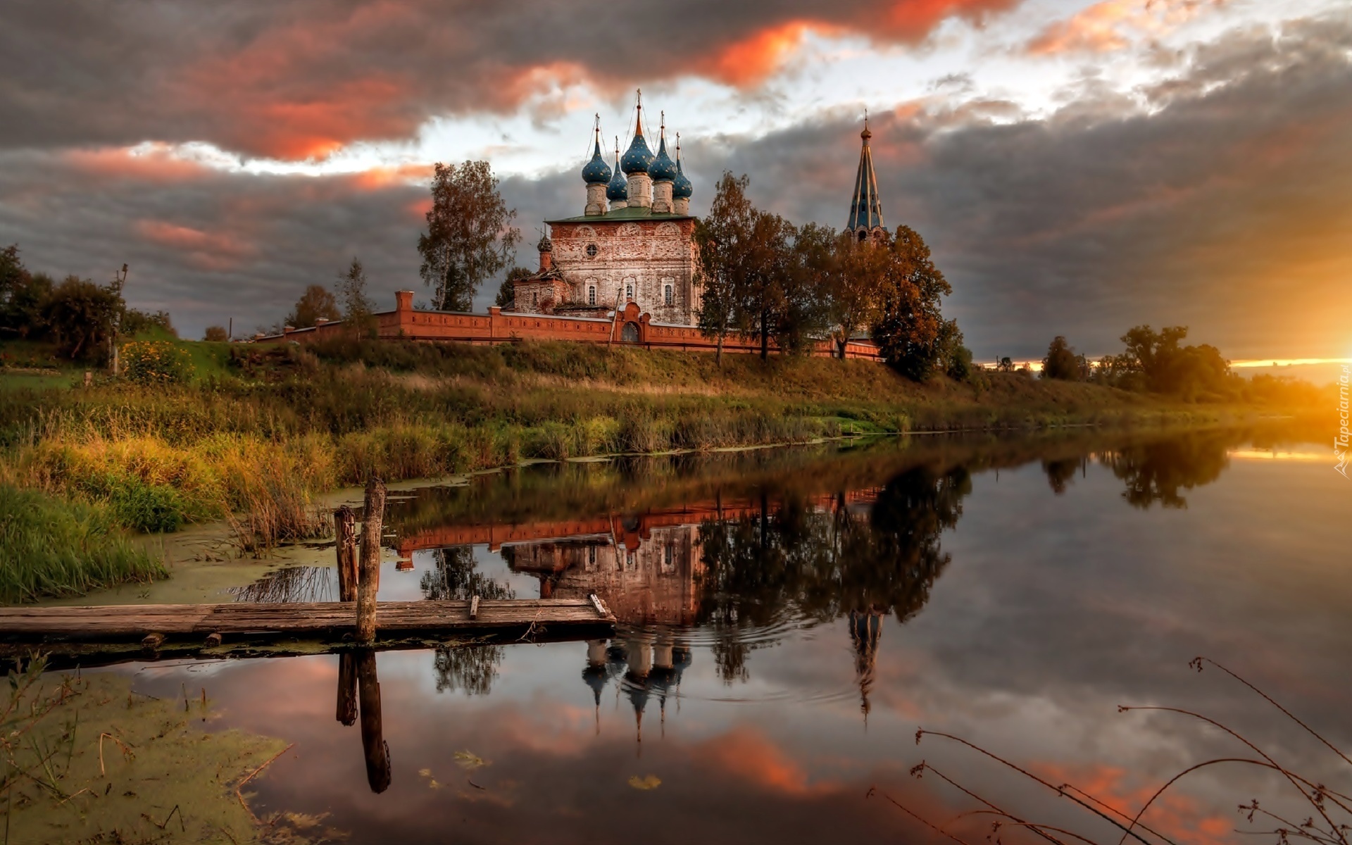 Edytor tapety: Cerkiew, Staw, Zachód Slońca, Dunilovo