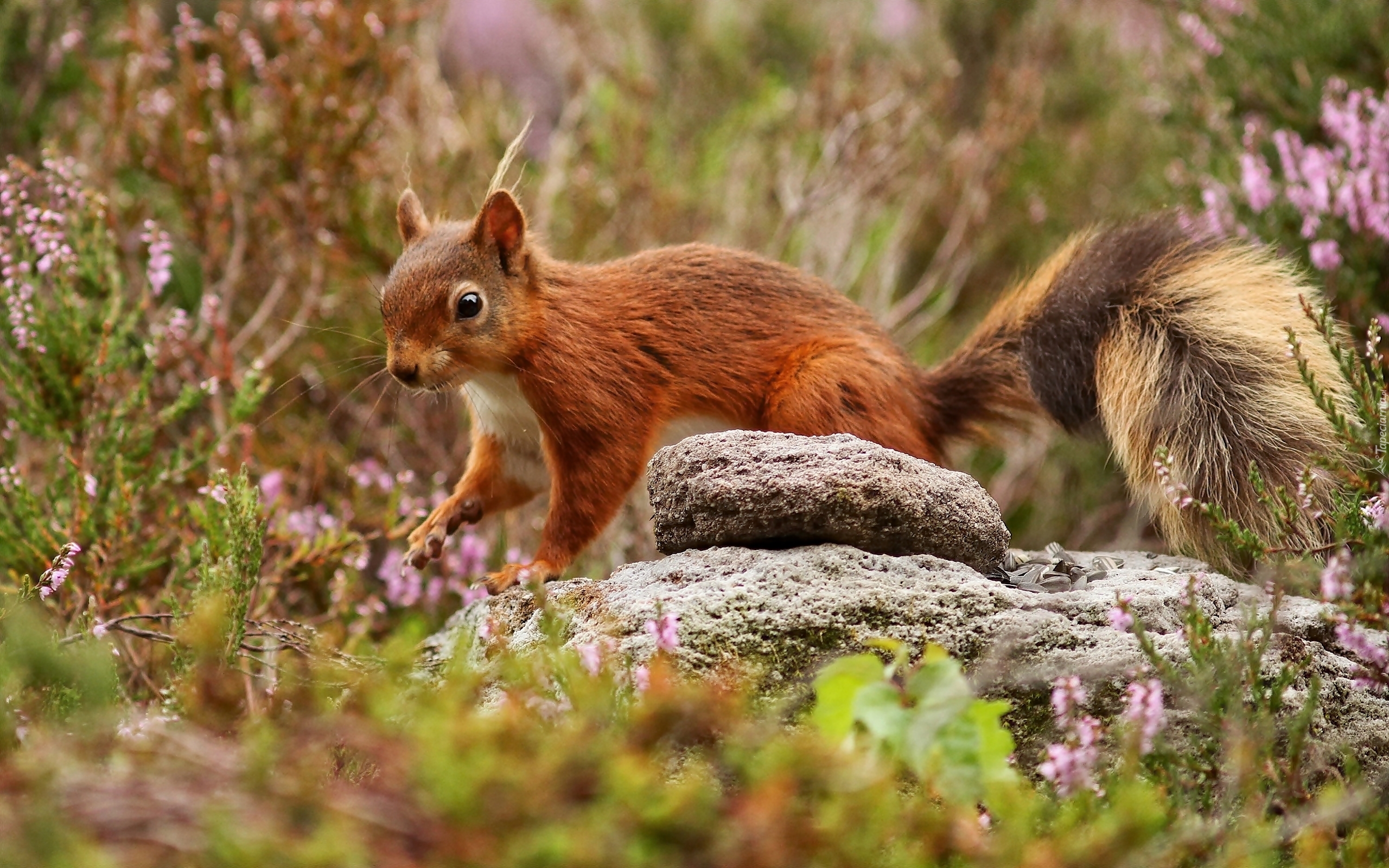 Edytor tapety: Wiewiórka, Kamień, Kwiatki