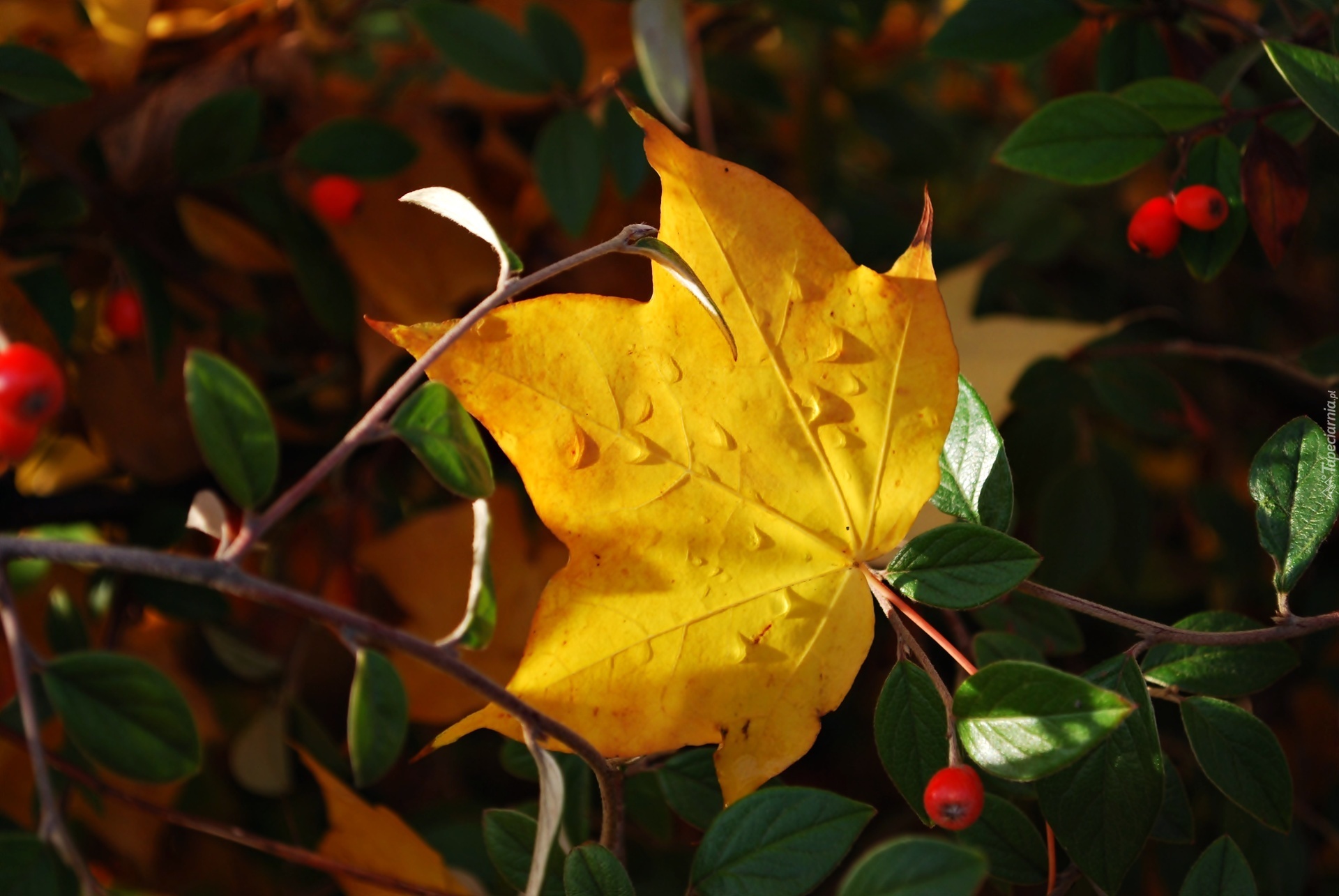 Edytor tapety: Jesienne, Liscie, Klonu, Gałązki, Czerwone, Jagody