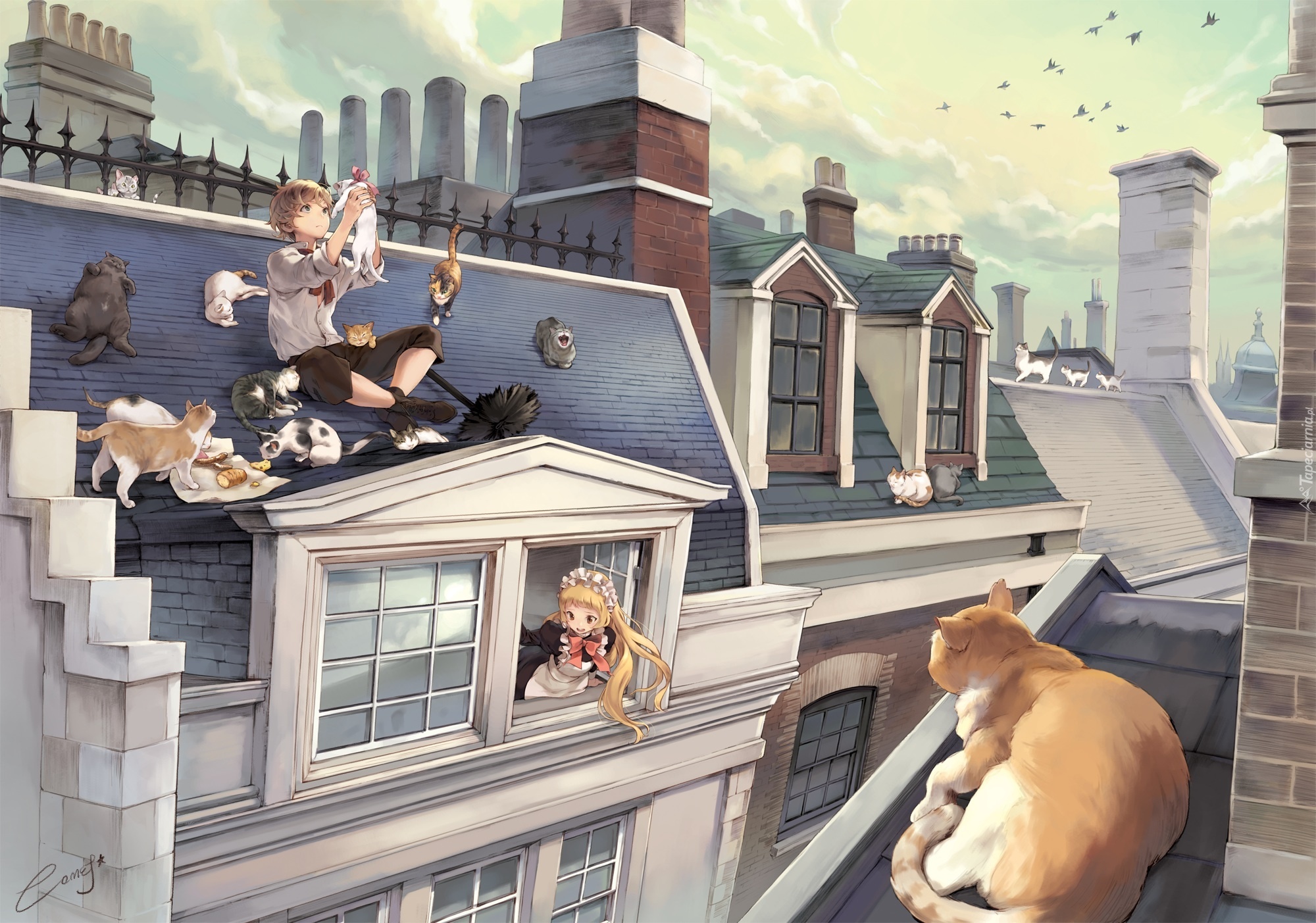 Edytor tapety: Ludzie, Domy, Koty, Anime
