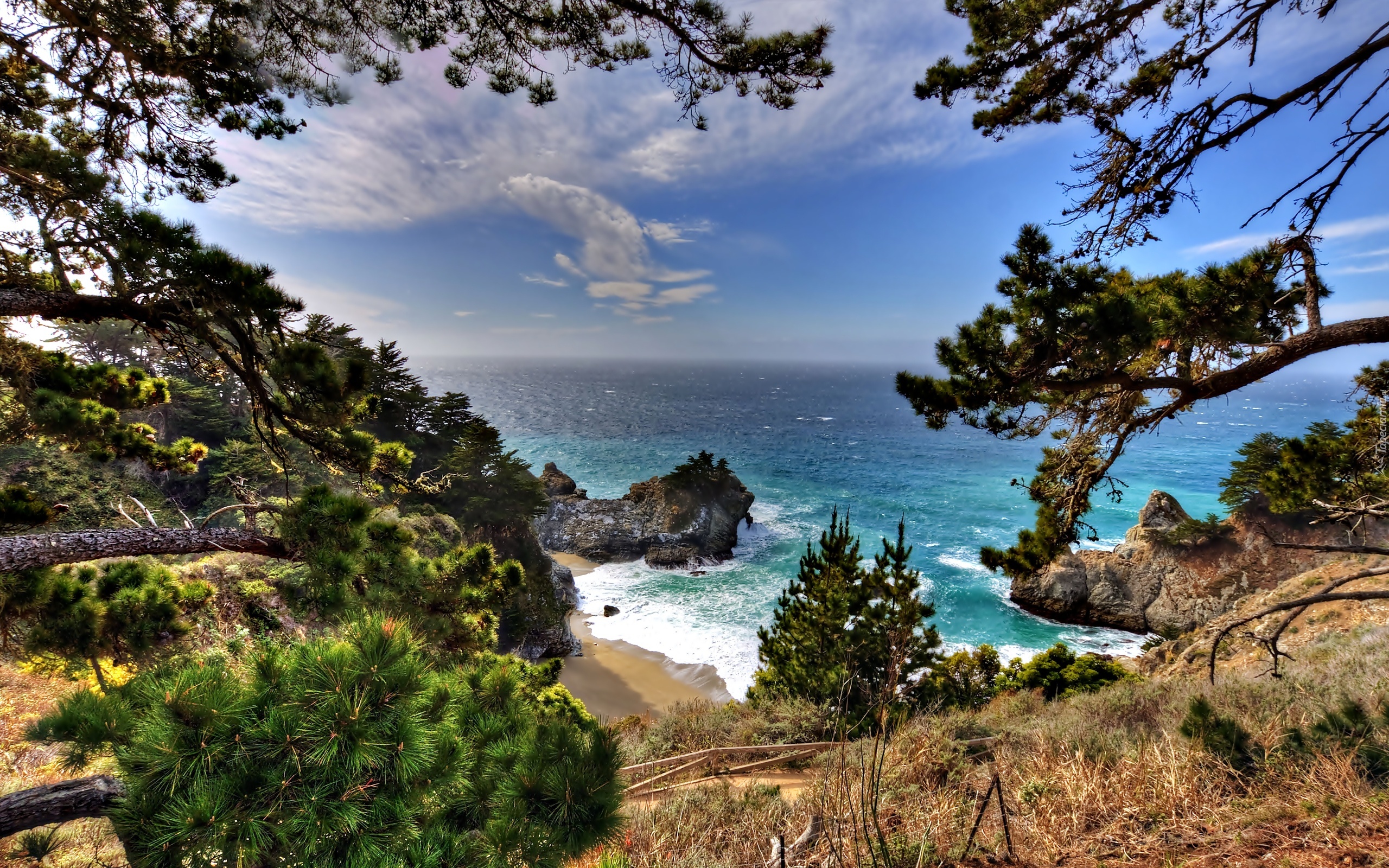 Edytor tapety: Morze, Zatoka, Drzewa
