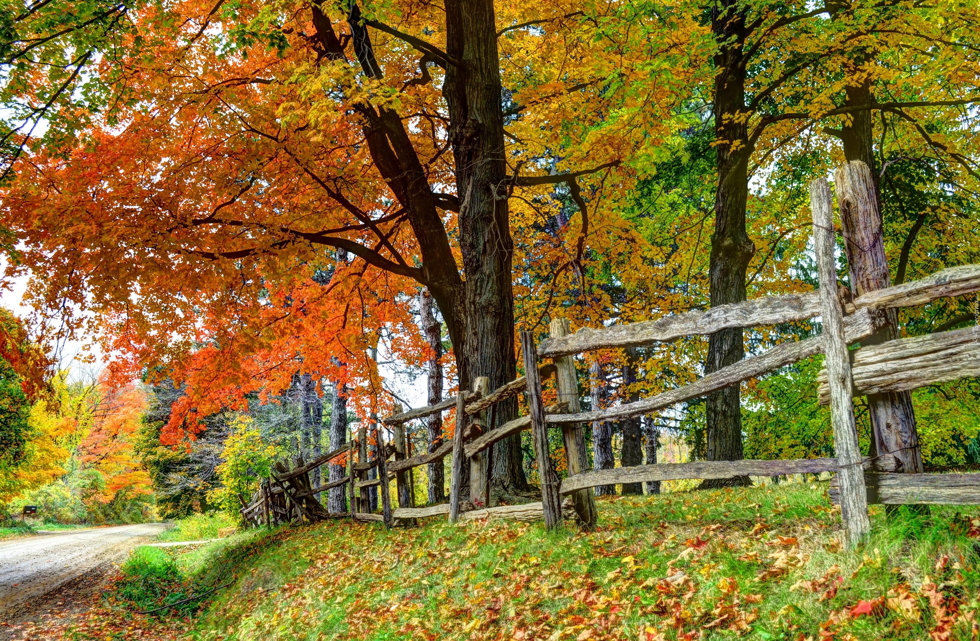 Edytor tapety: Płot, Jesień, Drzewa, Droga