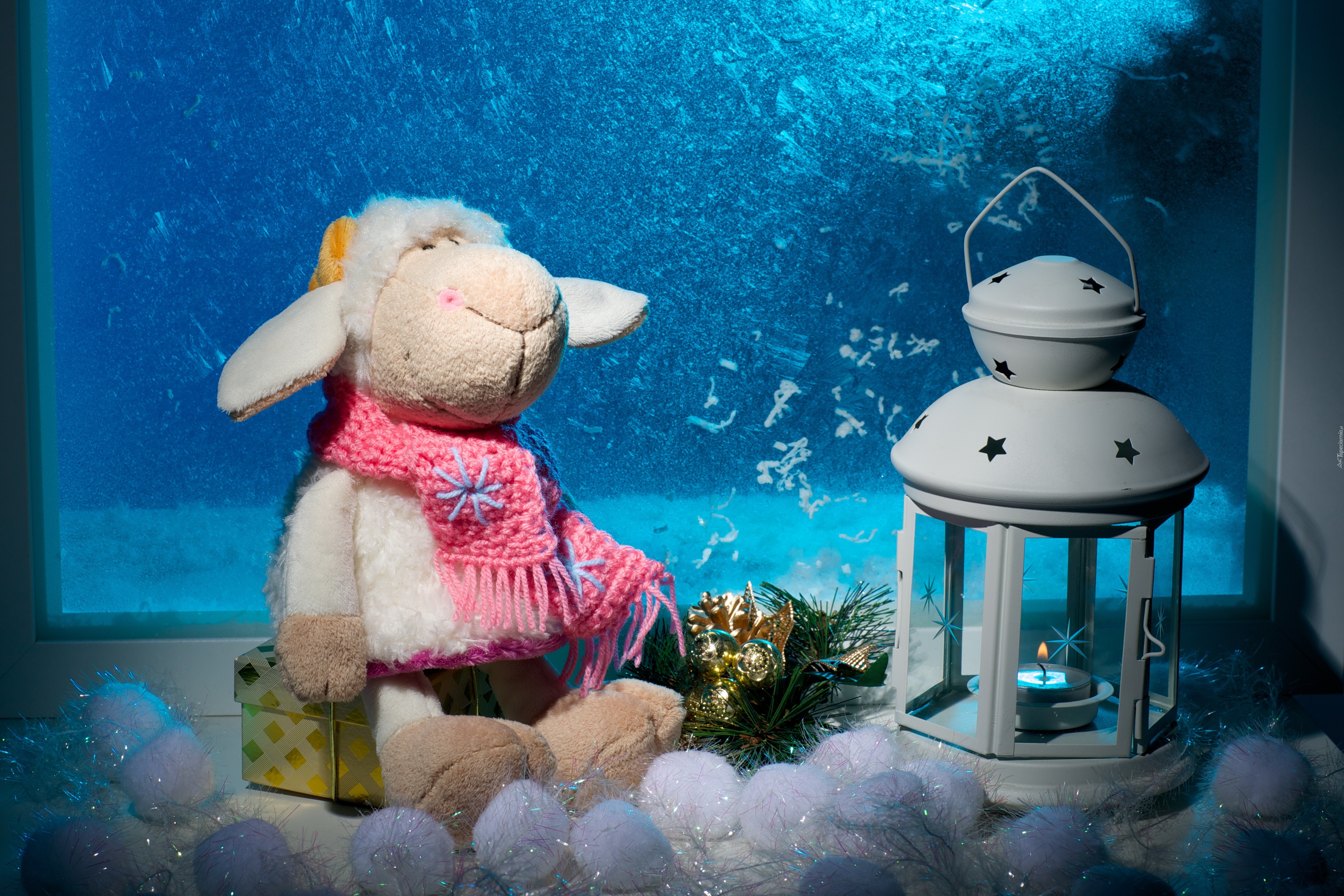 Edytor tapety: Lampion, Świeczka, Okno, Zima, Maskotka, Dekoracja
