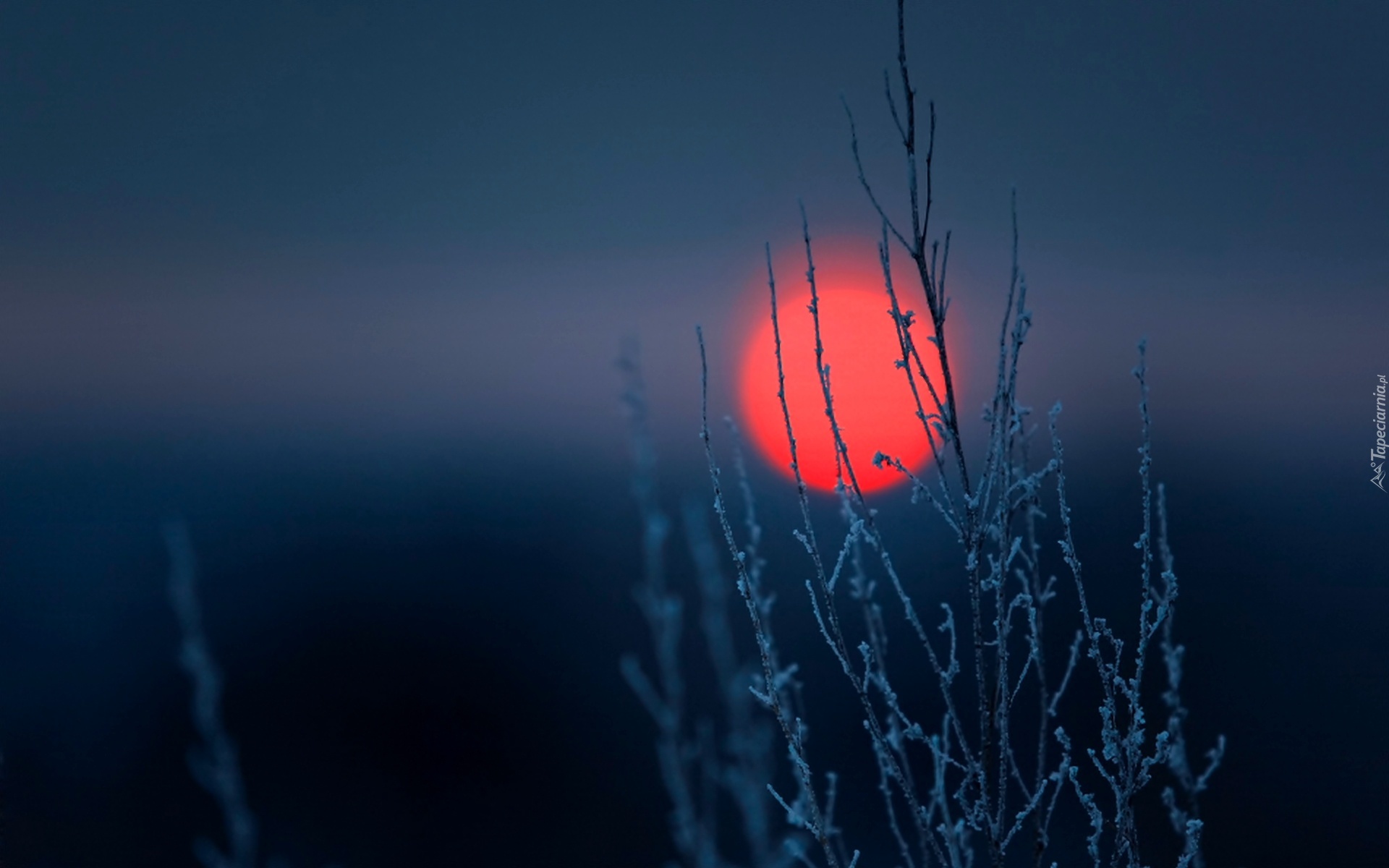 Edytor tapety: Czerwony, Księżyc, Gałązki