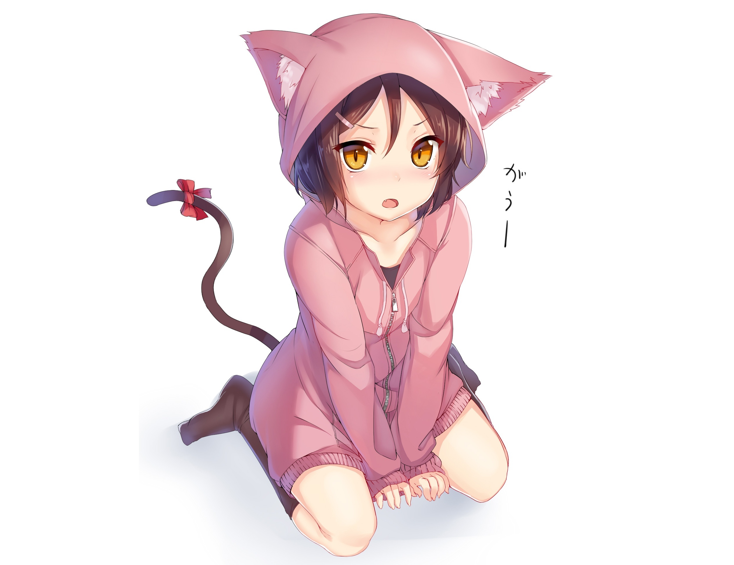 Edytor tapety: Dziewczyna, Bluza, Kotek, Anime